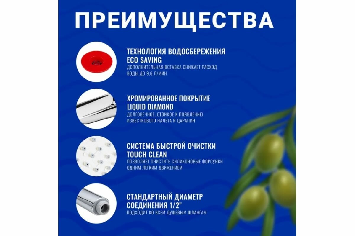 Лейка для душа Olive's 5 режимов с системой Touch Clean и вставкой ECO D165
