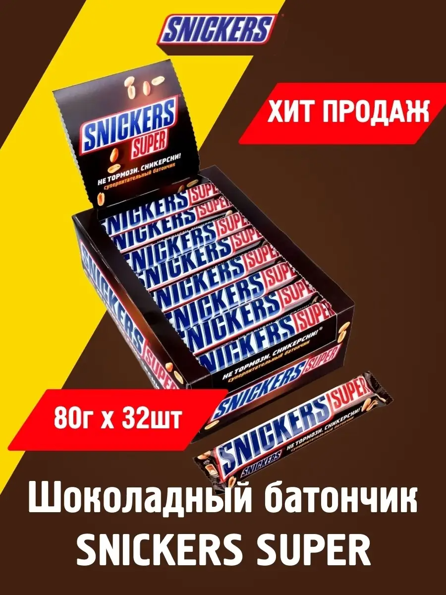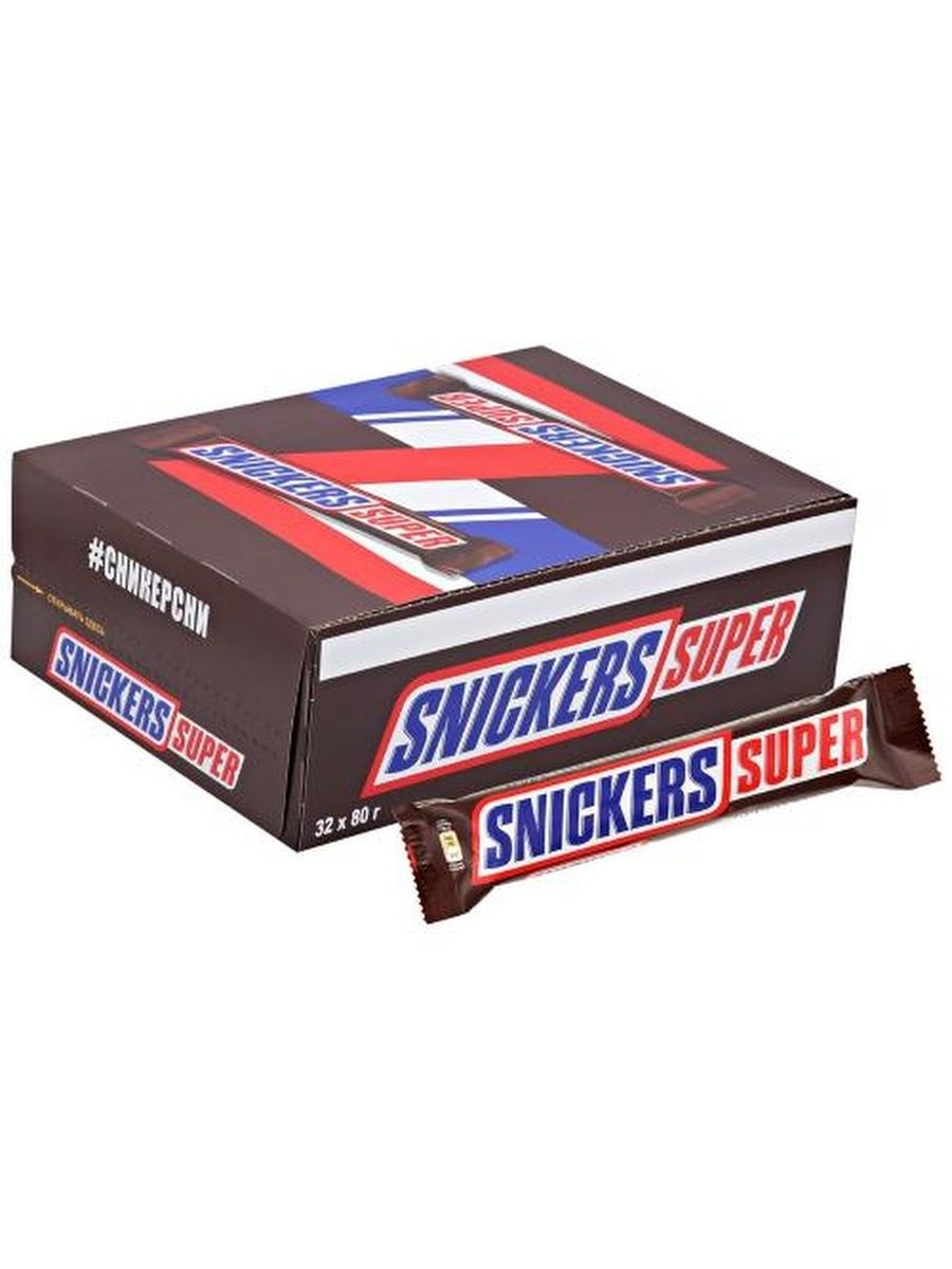 Купить Батончик Snickers Super, коробка, 80 г, 32 шт.