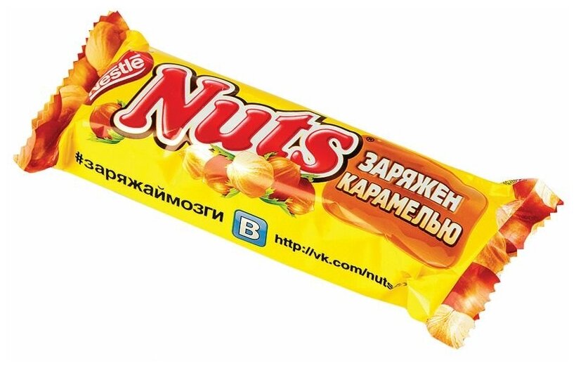 Ниже Вы можете прочитать отзывы на Шоколадный батончик Nuts с орехами 50г 10 шт, ознакомится с подробными характеристиками, посмотреть интересные обзоры и фотографии на Шоколадный батончик Nuts с орехами 50г 10 шт.