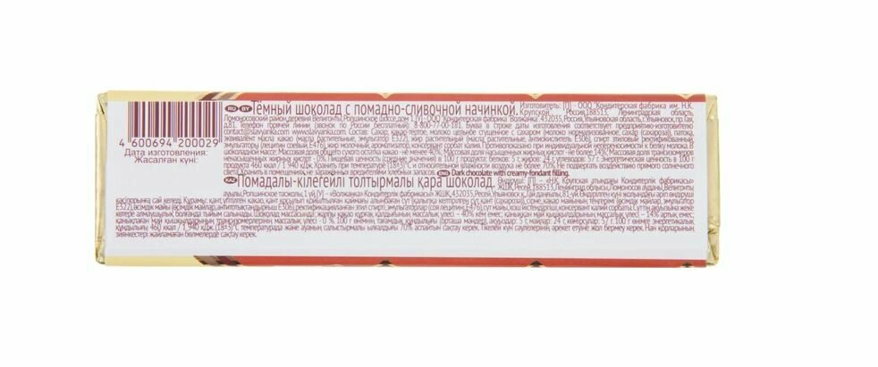 Шоколад тёмный с помадной сливочной начинкой 50г /КФ Крупской