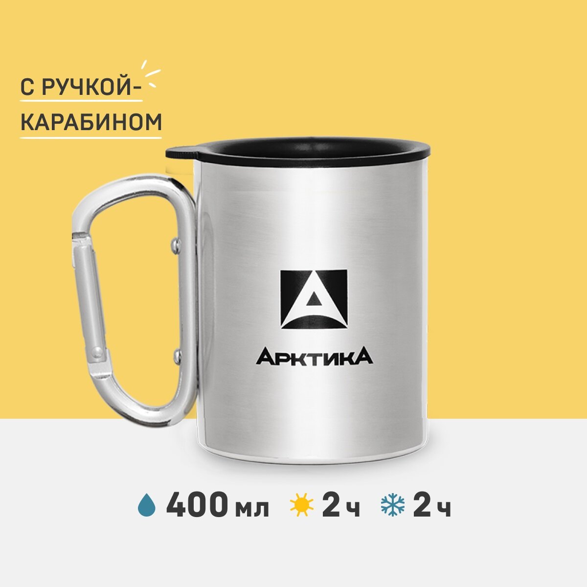 Ark-801-400К с карабином Термокружка невакуумная, тм "Арктика", 400 мл интересное: