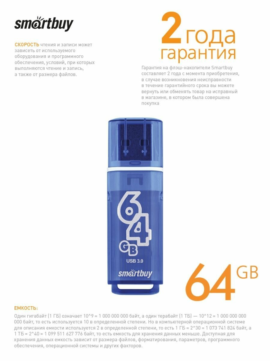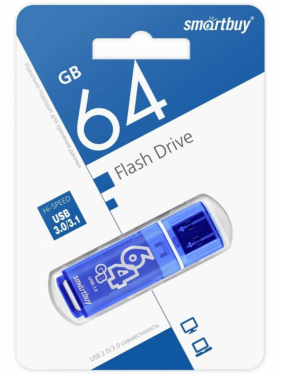 Флэш-накопитель USB SMARTBUY GLOSSY 64GB, USB 3.0, DARK BLUE (SB64GBGS-DB)