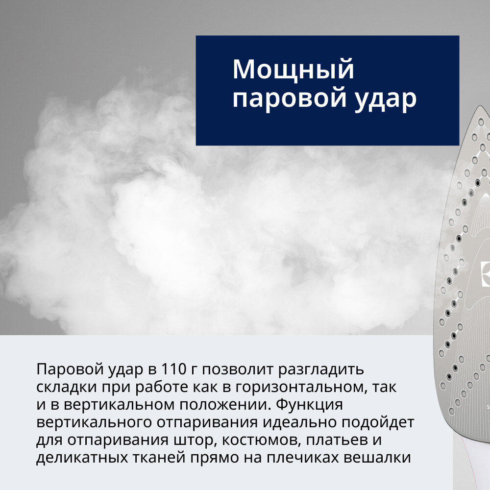 Я люблю сухую глажку, воду не наливала ещё. Но сухой утюг отлично скользит вперёд, а назад очень плохо, как будто что-то мешает ему, цепляет. И если водишь боком тоже плохо скользит. В итоге глажу им медленнее, чем прошлым филипсом азур. Если бы не неожиданный взрыв вилки прошлого утюга, не меняла бы его.