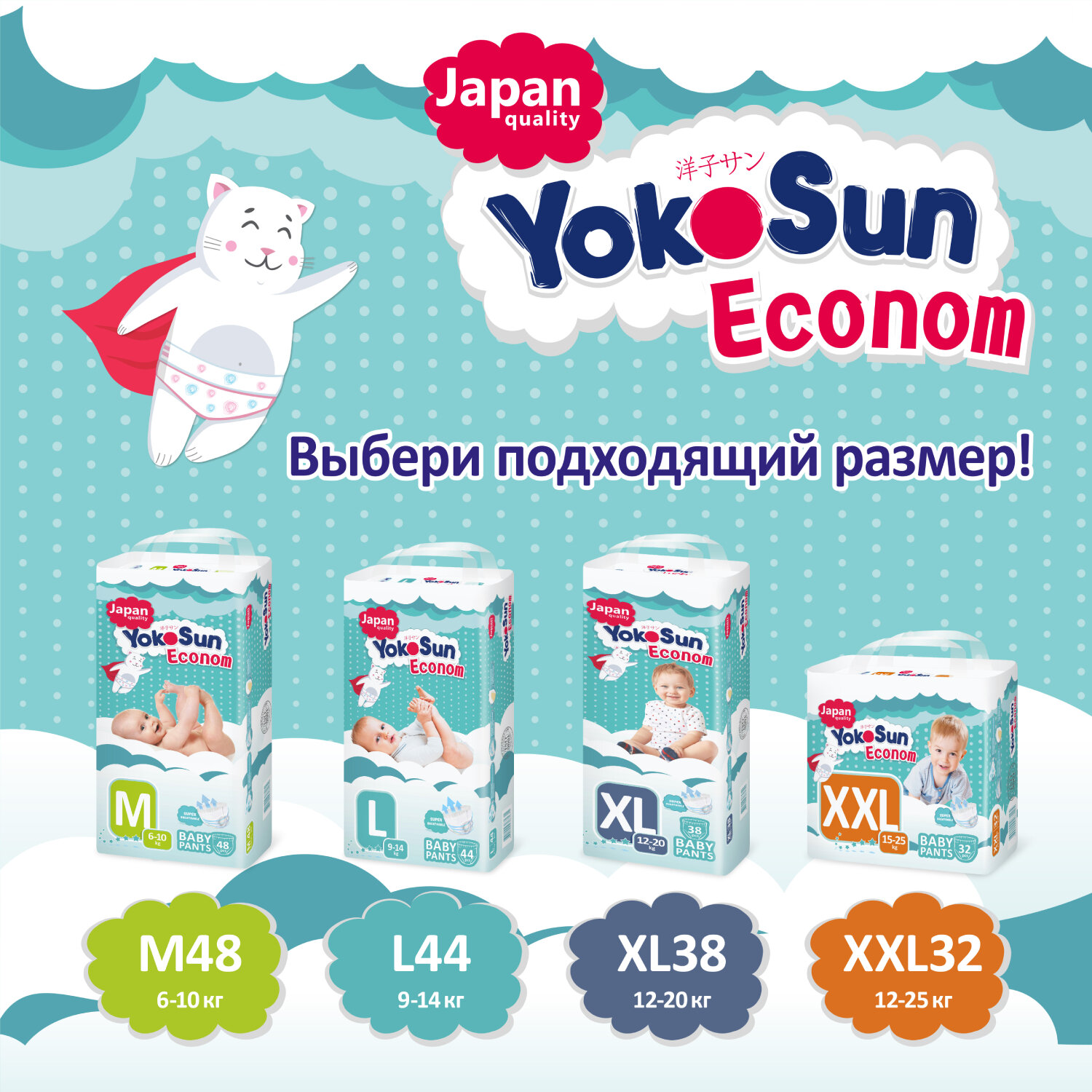 Подгузники-Трусики YokoSun ECONOM M (6-10 кг) 48 шт
