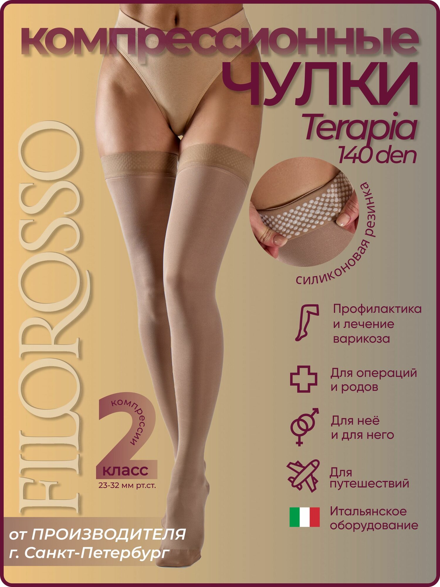 Купить Чулки компрессионные Filorosso Terapia 140 den с силиконовой резинкой, 2 класс компрессии, бежевый, размер 4