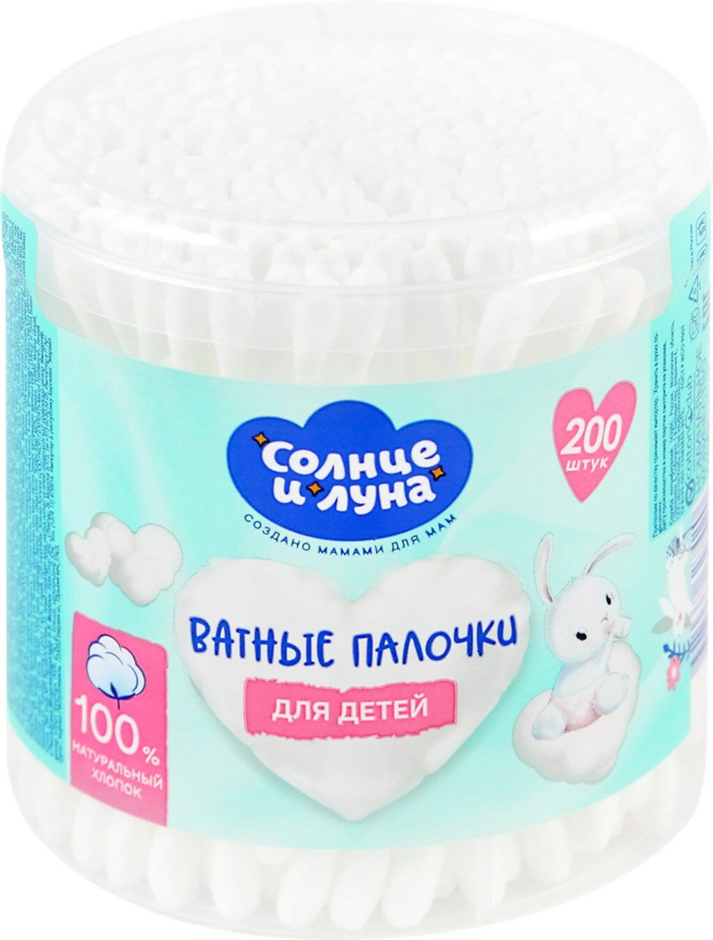 Солнце и Луна Ватные палочки для детей ЕСО, 200шт