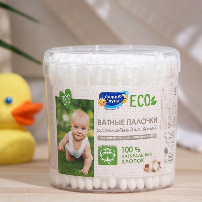 Ватные палочки солнце И луна ЕСО круглый, для детей 200шт
