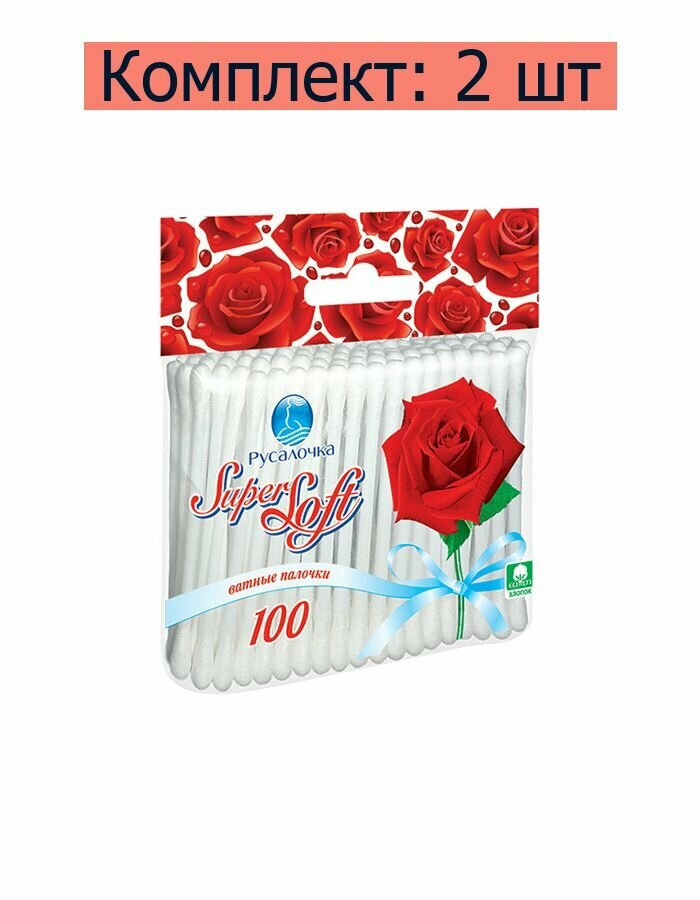 Купить Русалочка Палочки ватные "Super Soft", пакет с европодвесом, 100 шт, 2 упаковки /