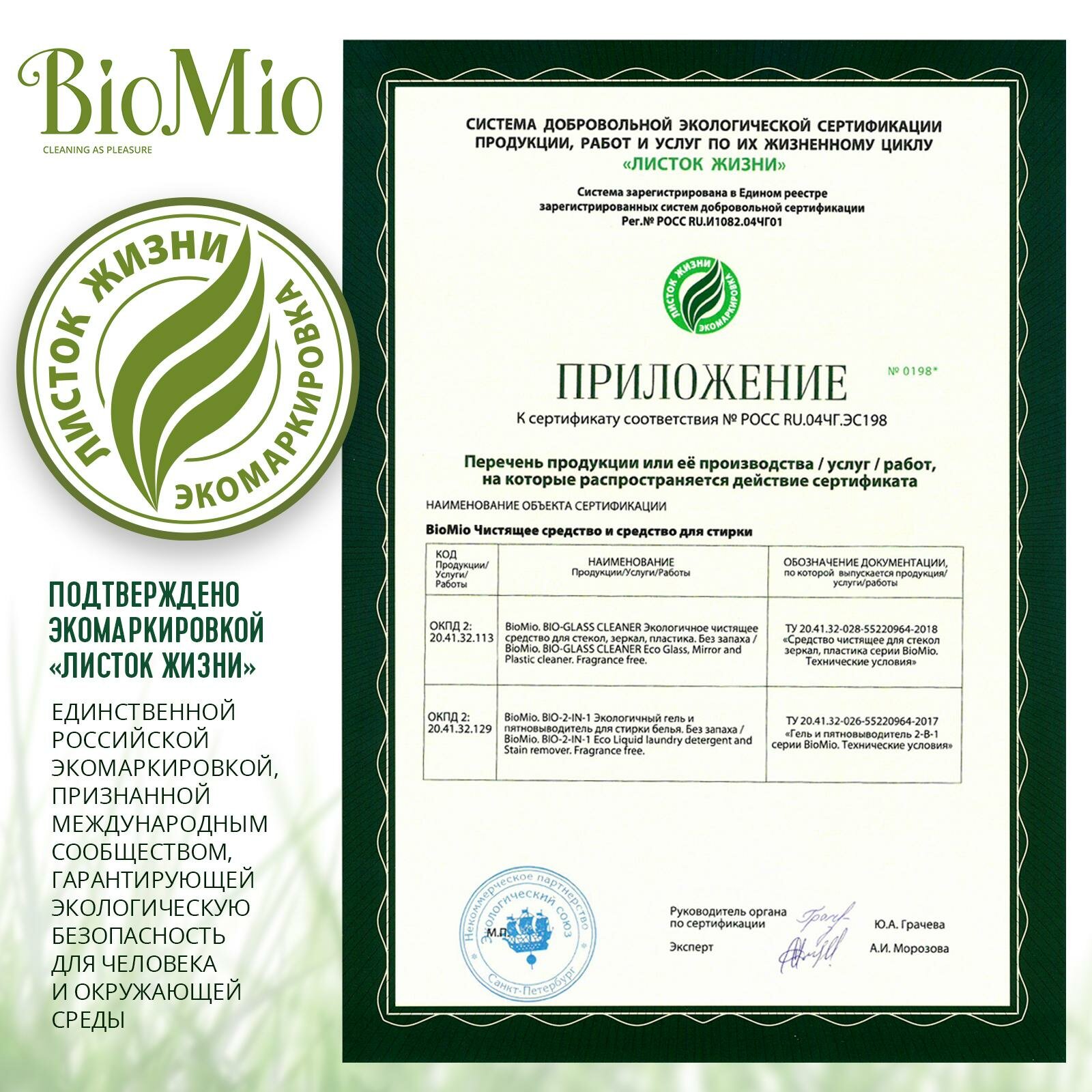 BioMio. BIO-GLASS CLEANER Экологичное чистящее средство для стекол, зеркал, пластика. Без запаха 500мл, (2шт)