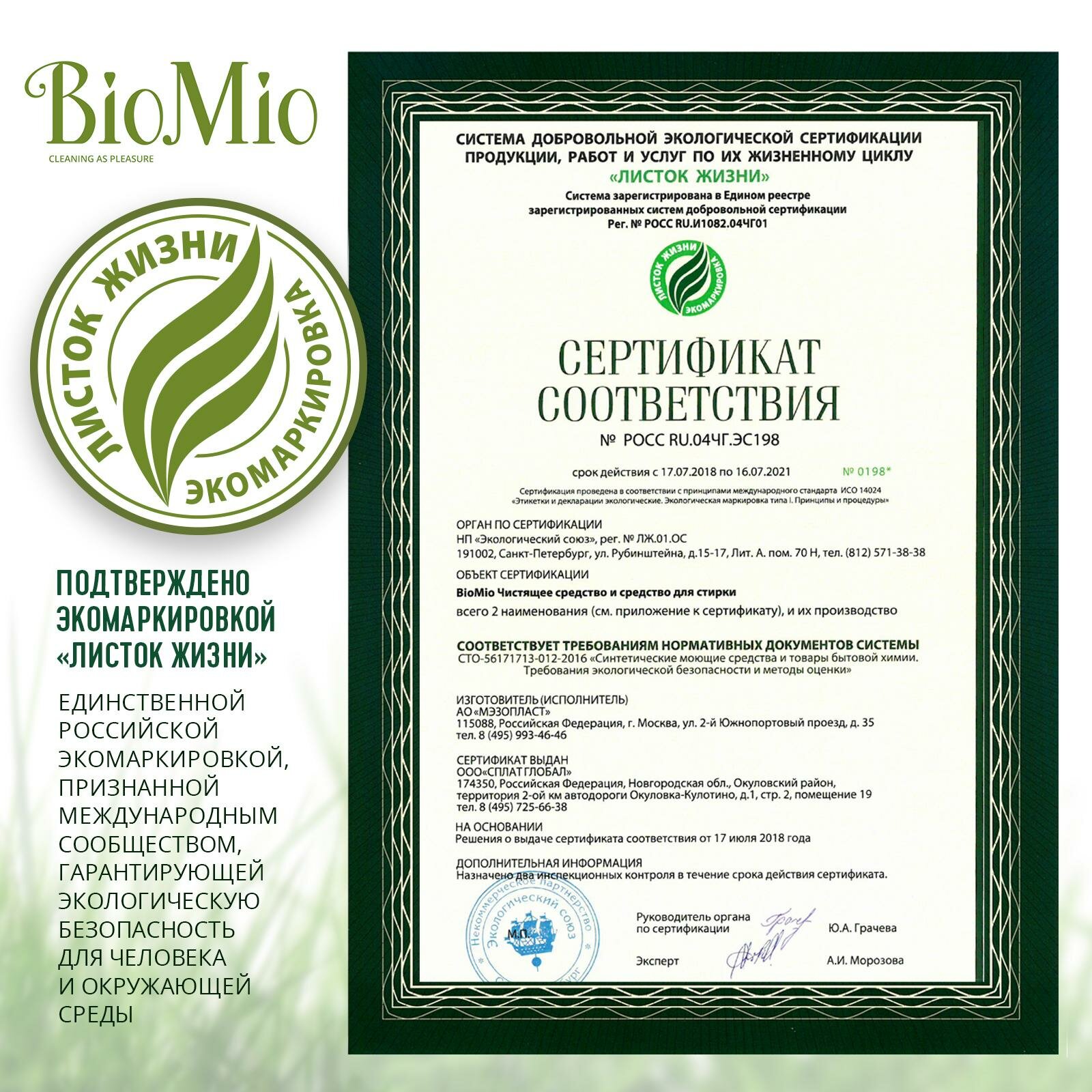 Чистящее средство для стекол BioMio BIO-CLEANER для очистки стекол, зеркал, пластика, гипоаллергенно, 500 мл