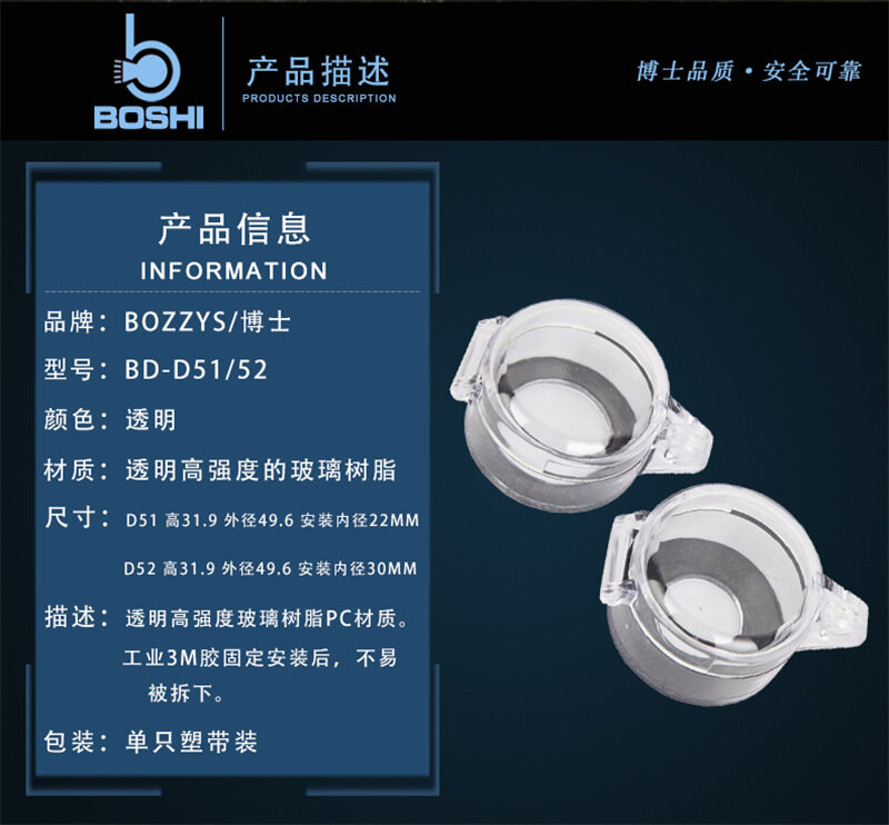 Купить Блокировка аварийной остановки BOZZYS BD-D52, диаметр отверстия 22 мм, наружный диаметр 49.6 мм