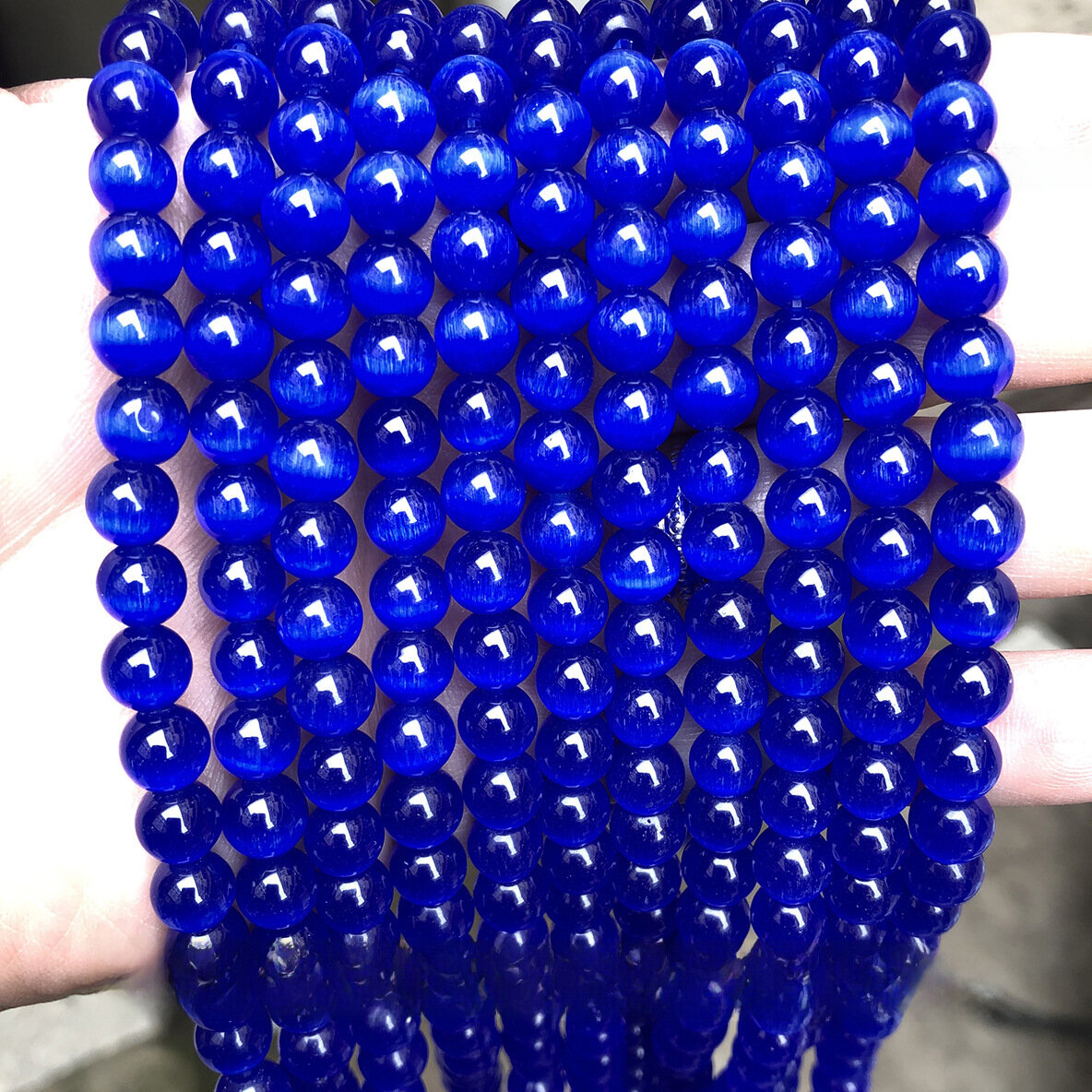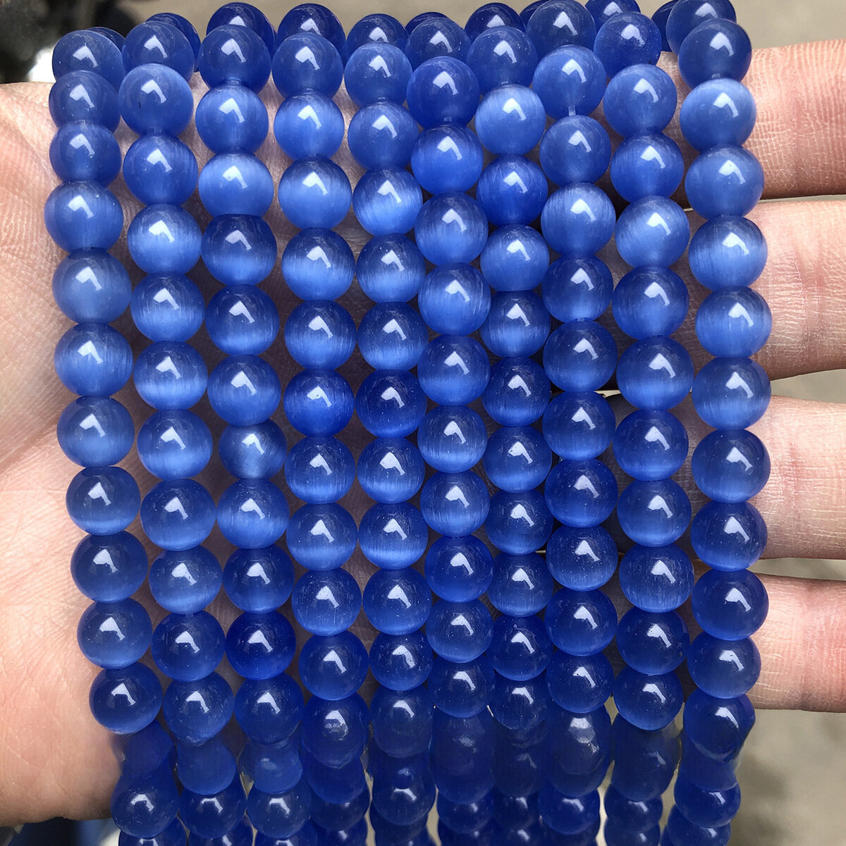 Купить Бусины "Кошачий глаз", голубой, 12 мм