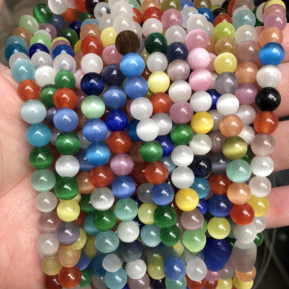 Бусины "Кошачий глаз", голубой, 12 мм интересное: