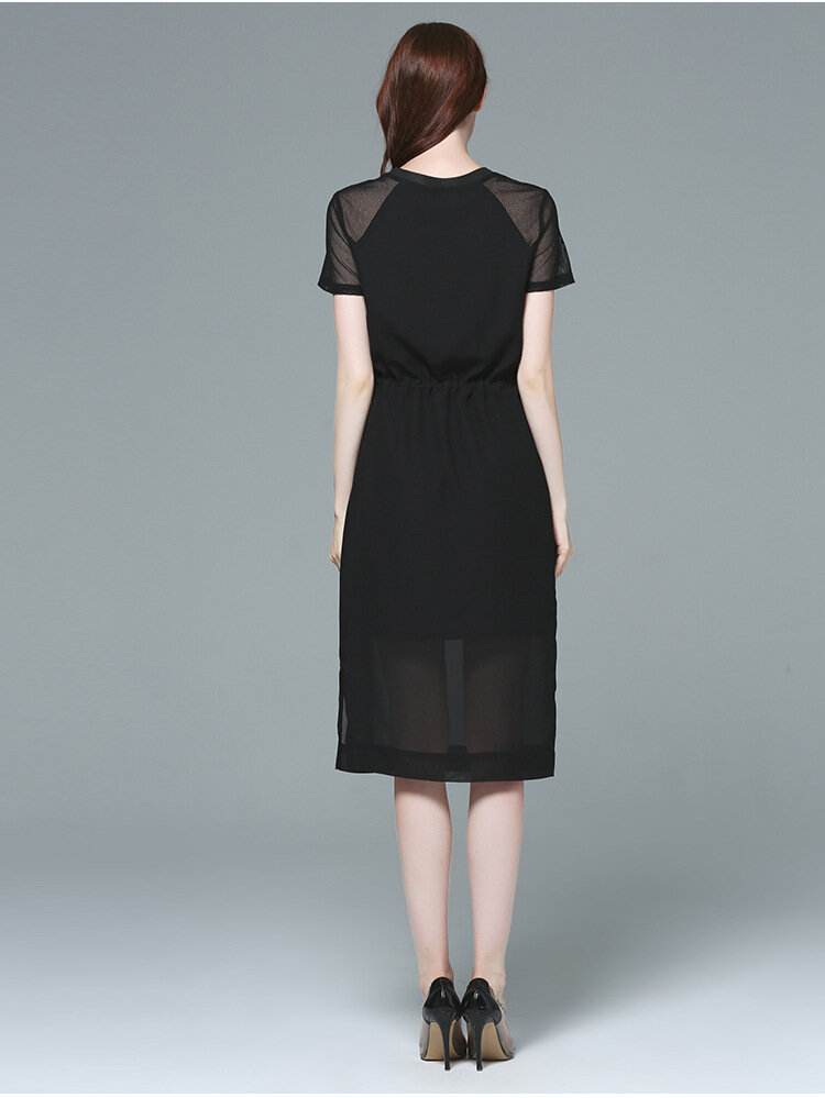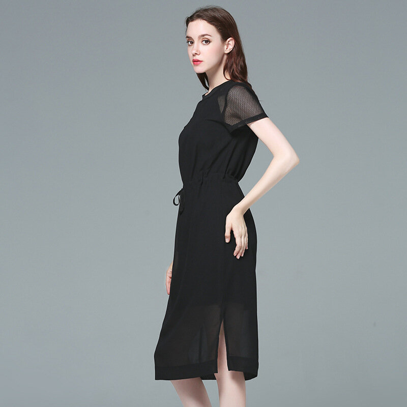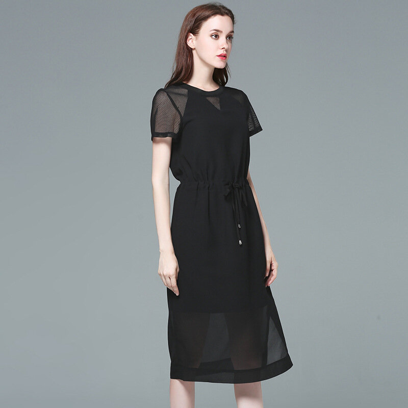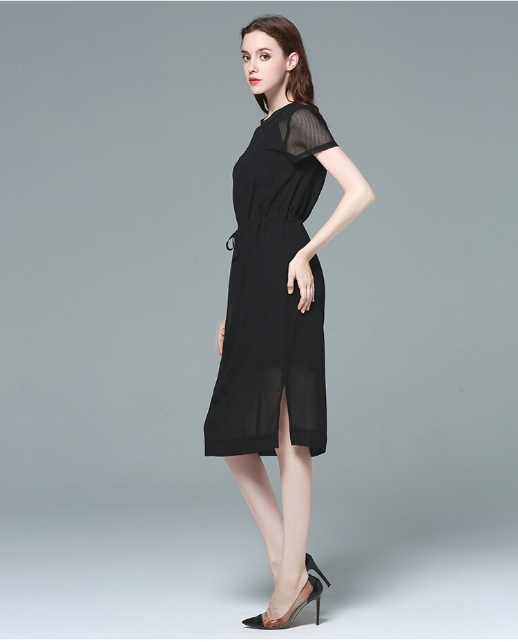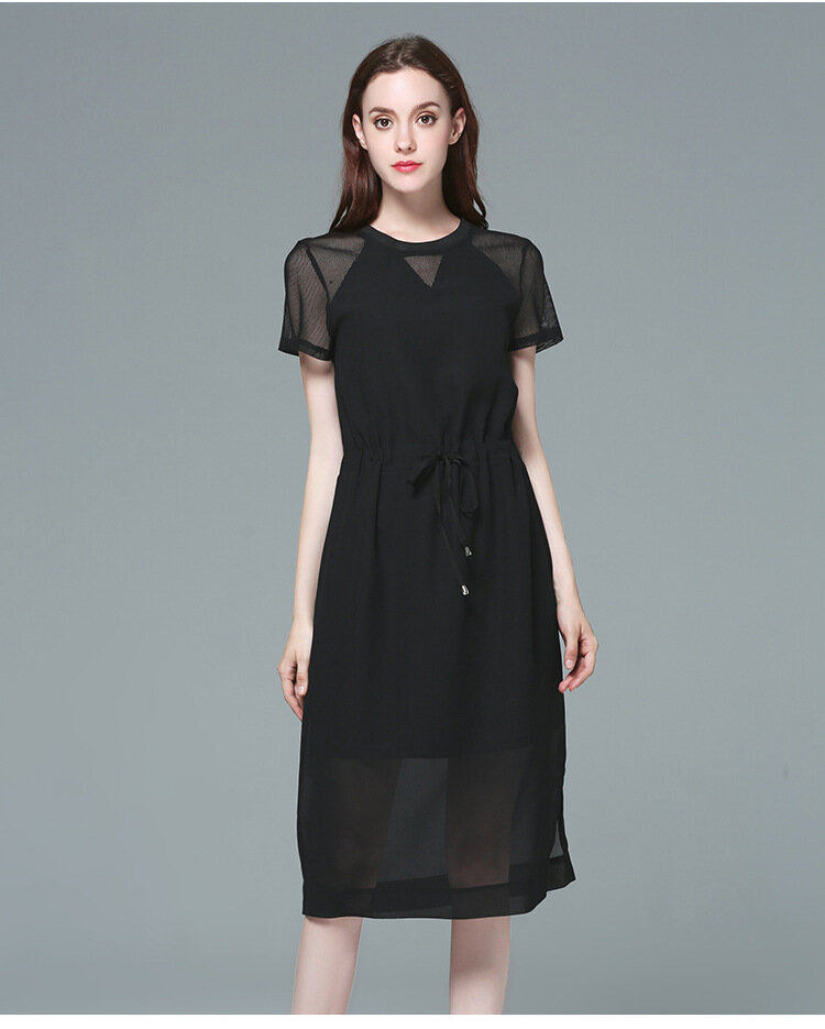 Купить Платье, шифон, черное, американское, европейское, минимализм, с завязками