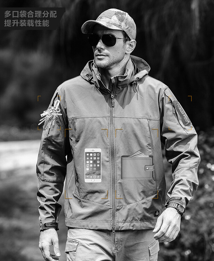 Купить Куртка Soft Shell Jacket, мужская, ветрозащитная, водоотталкивающая, свободный силуэт