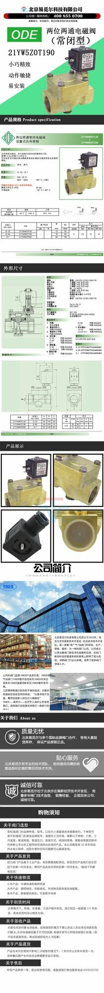Купить Клапан паровой ODE 21YW5Z0T190 DN20, латунь, двухходовой, высокотемпературный, 110V
