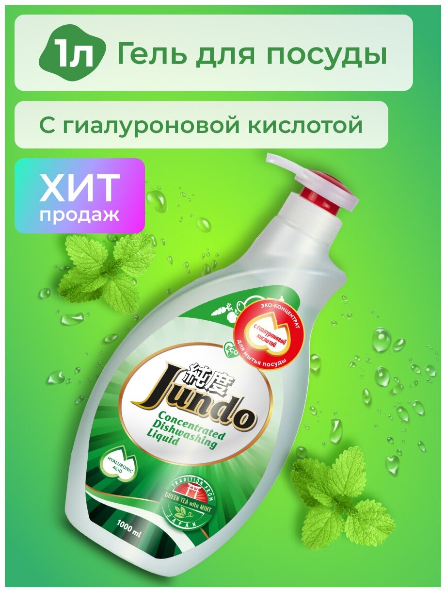 Купить Jundo Концентрированный ЭКО-гель с гиалуроновой кислотой для мытья посуды и детских принадлежностей «Green tea with mint», 1 л- Упаковка 9 Шт.