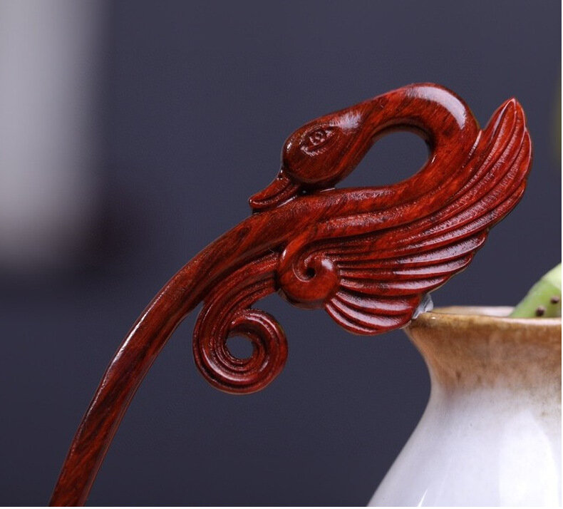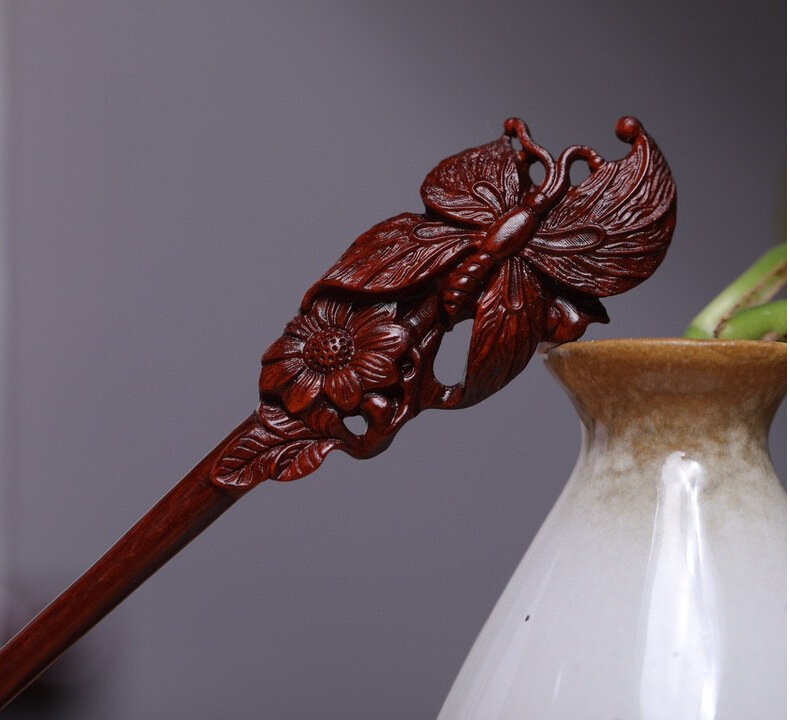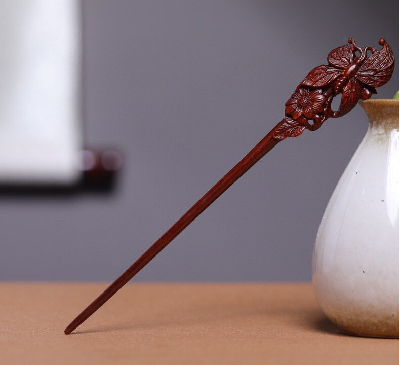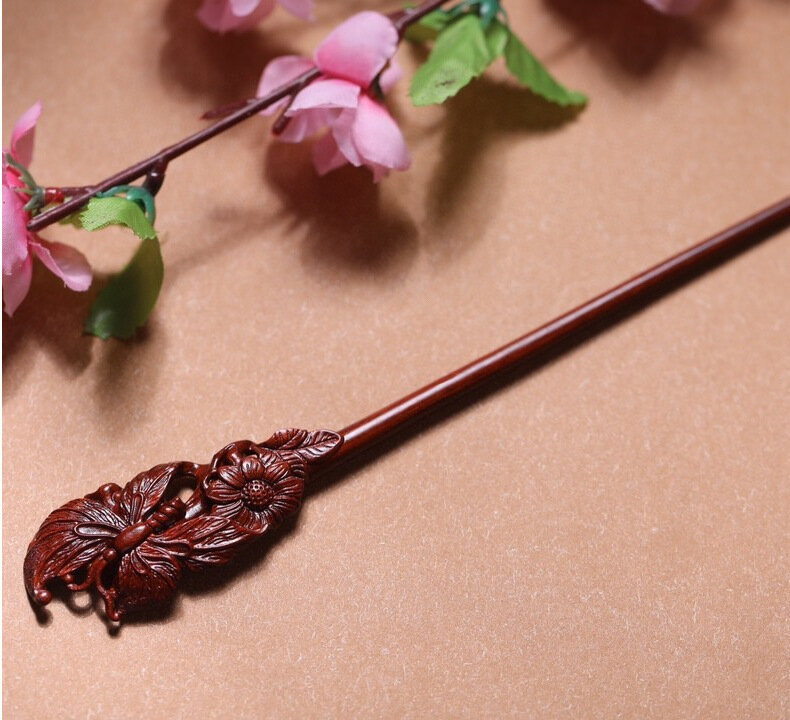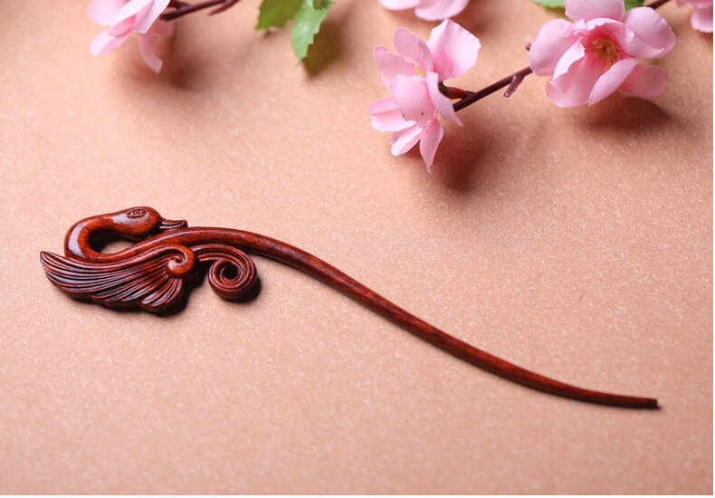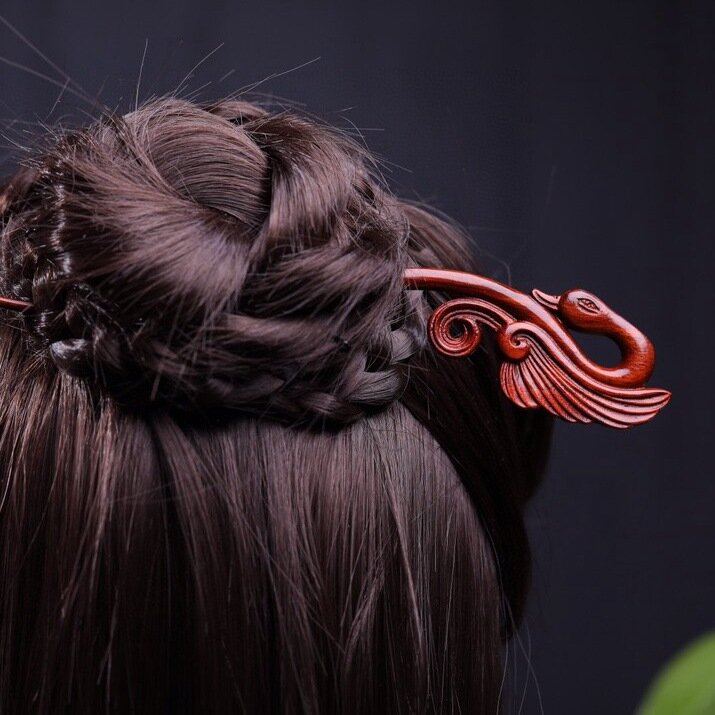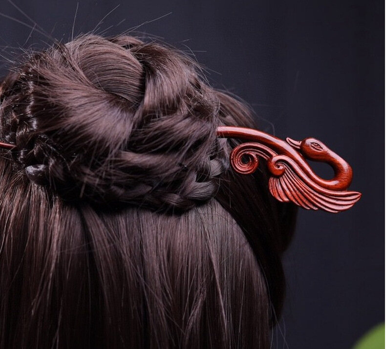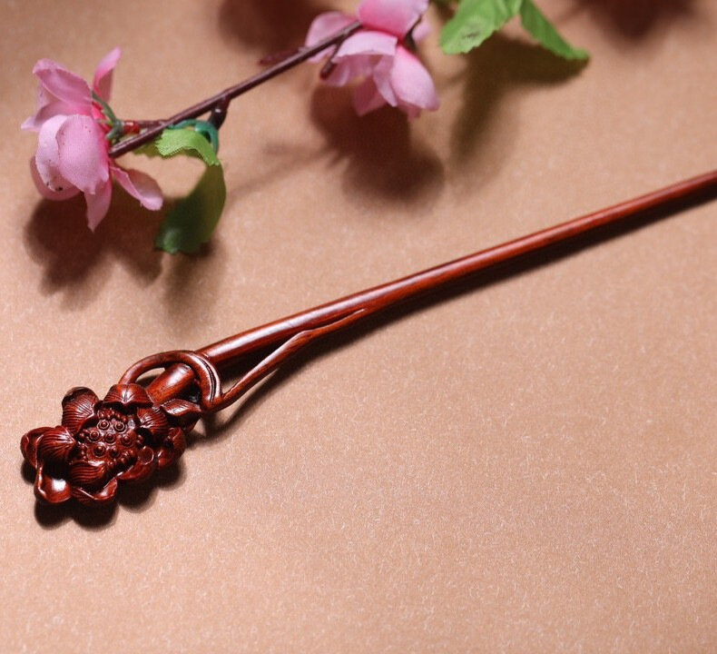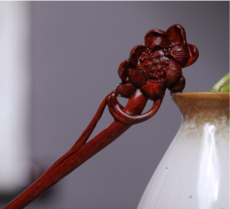 Заколка для волос "Красный сандал", резьба в древнем стиле интересное: