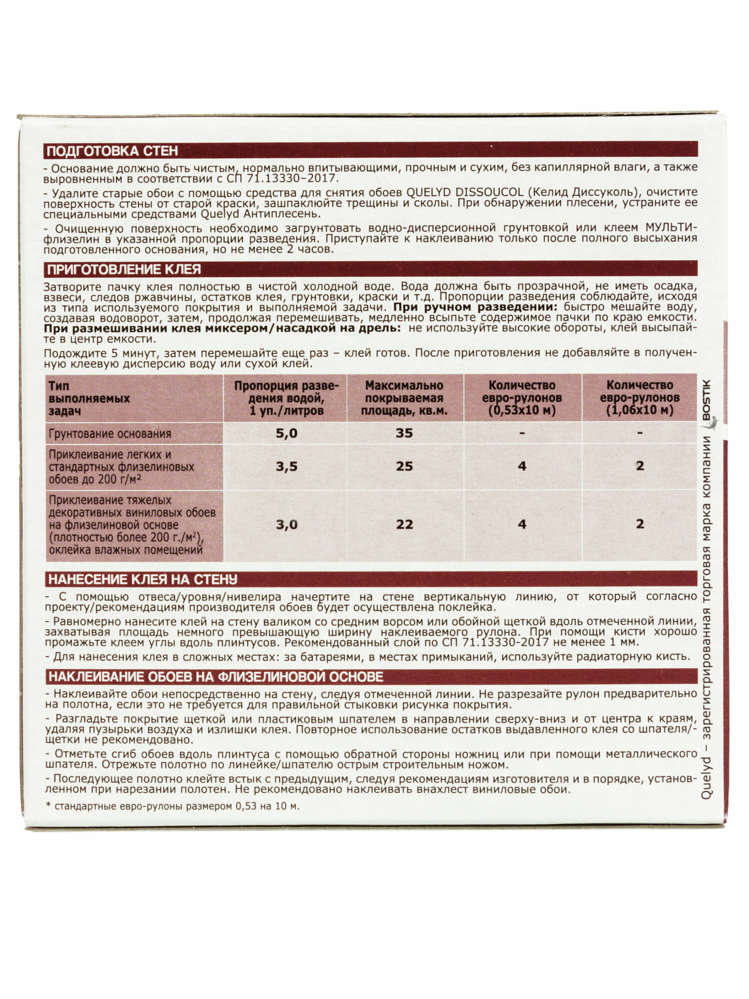 Клей для флизелиновых обоев Quelyd Спец-флизелин 35 м