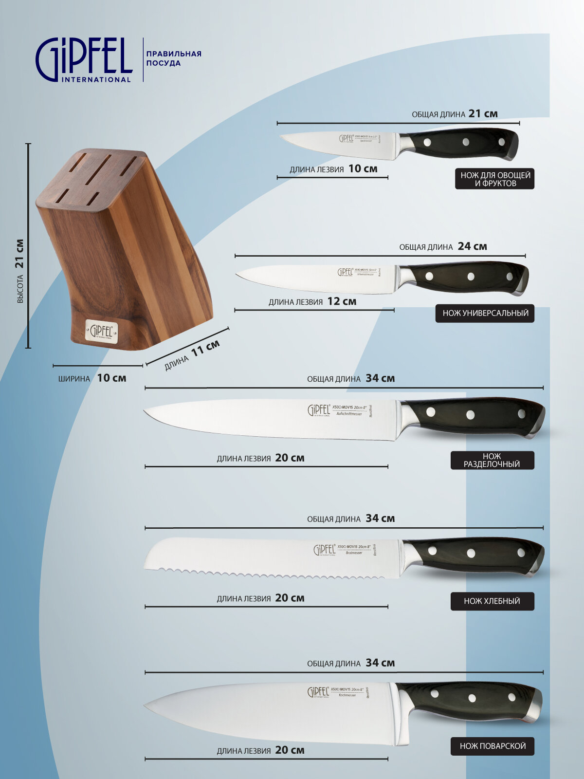 | Количество ножей | 5 шт. |