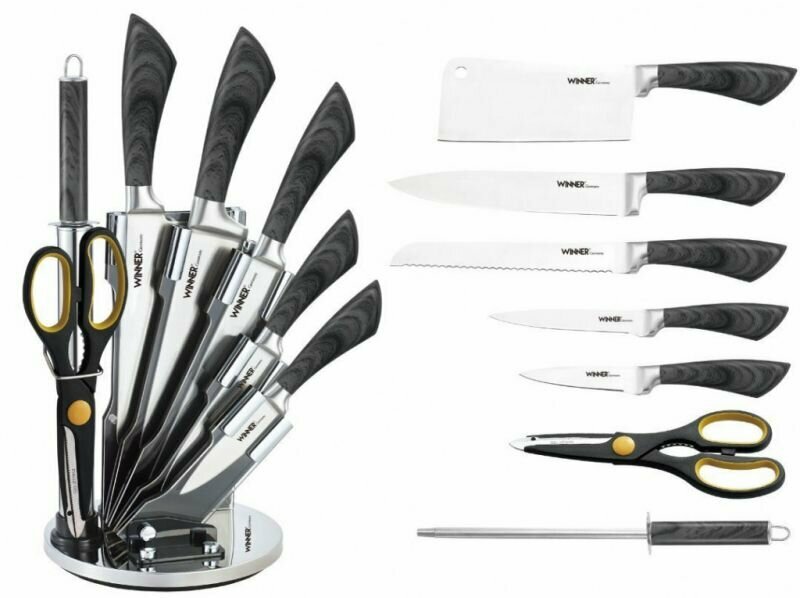 Набор Winner WR-73, 5 ножей, ножницы, точилка и подставка