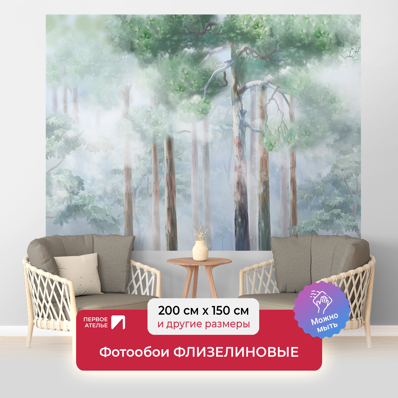 Купить Фотообои на стену флизелиновые природа лес первое ателье "Высокие сосны в тумане" 200х150 см (ШхВ), моющиеся, Premium