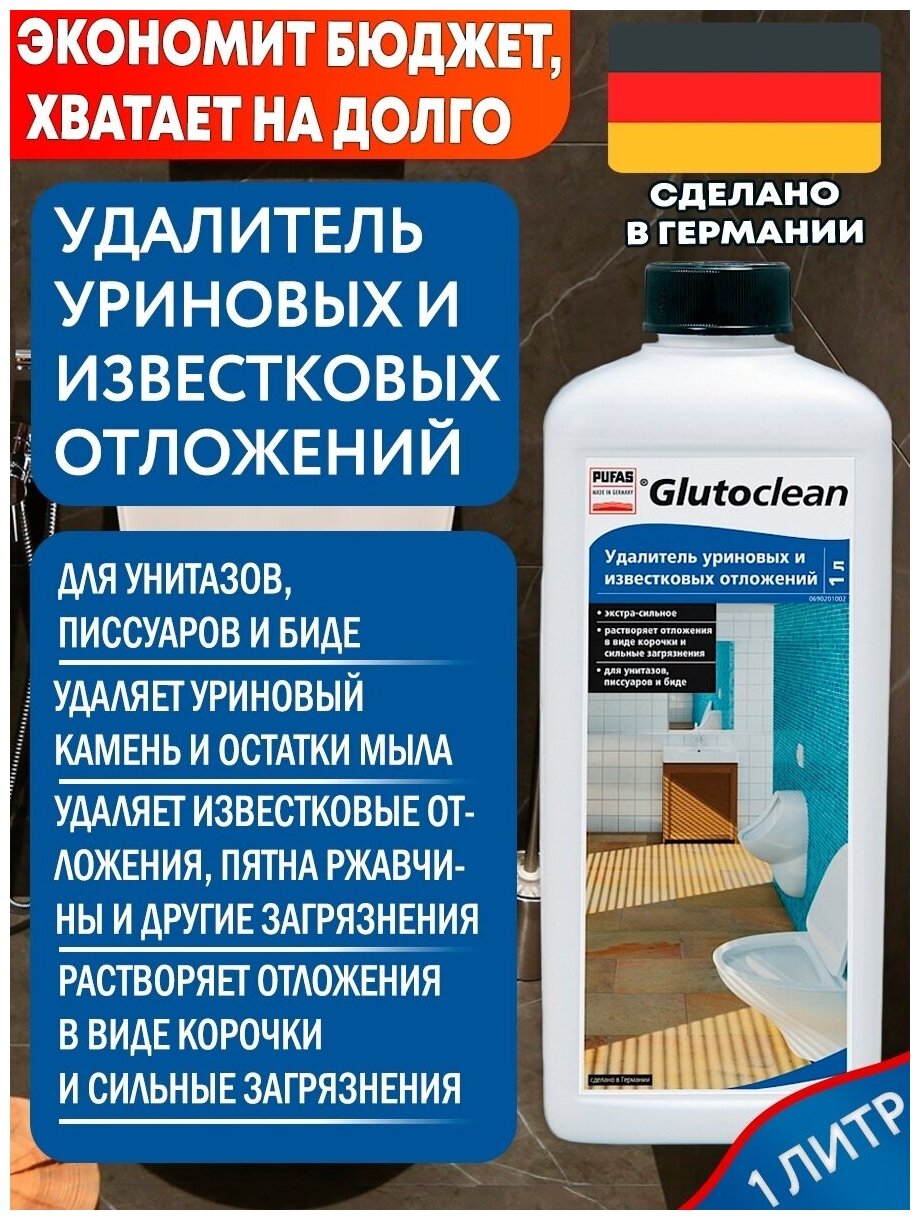 Удалитель уриновых и известковых отложений, Pufas Glutoclean, 1 л. для унитаза и писсуаров