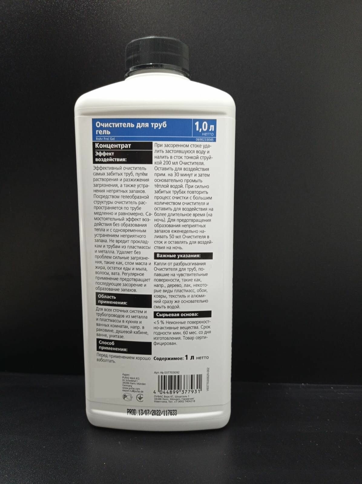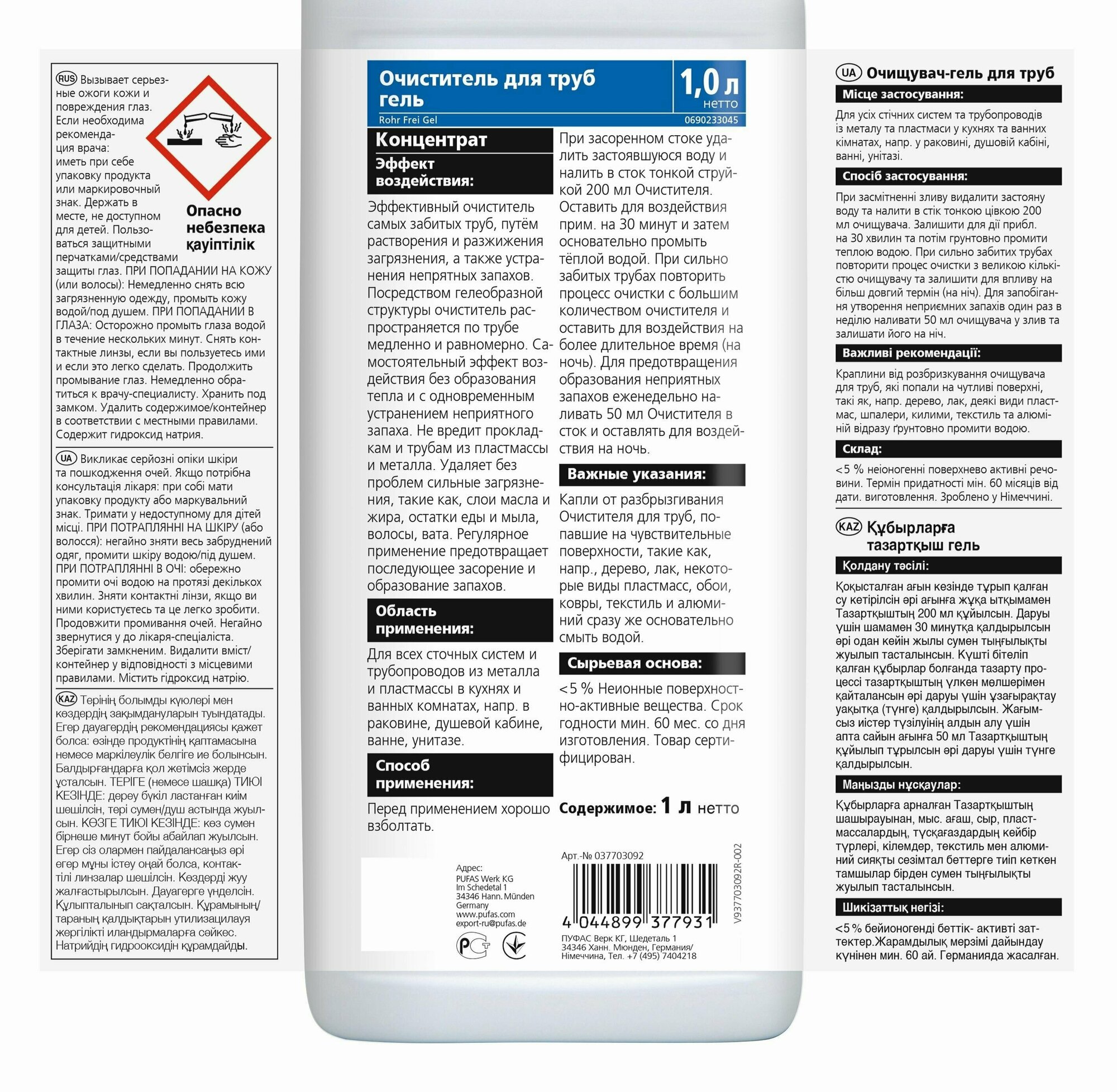 Очиститель для труб гель, Pufas Glutoclean Rohr Frei Gel, 1 л.