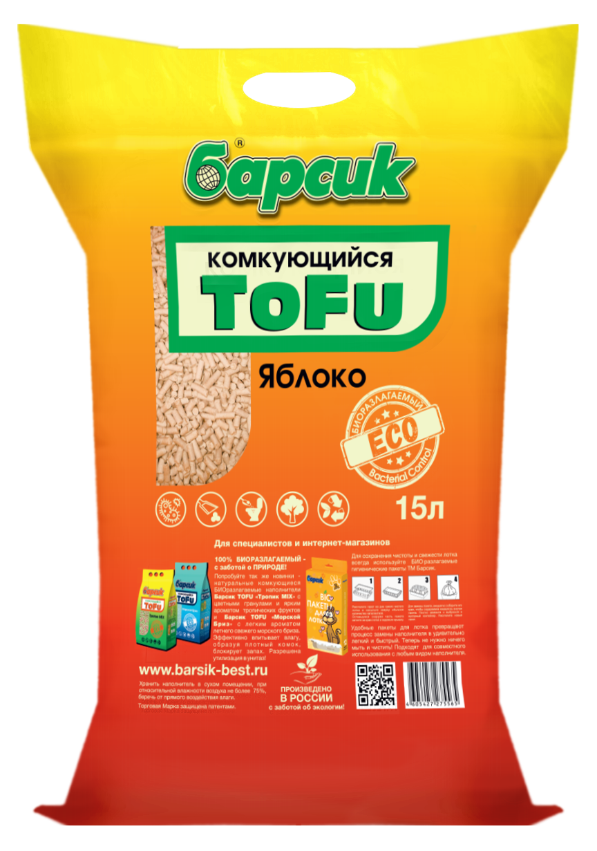 Купить Наполнитель Барсик TOFU Яблоко Комкующийся NEW 15л