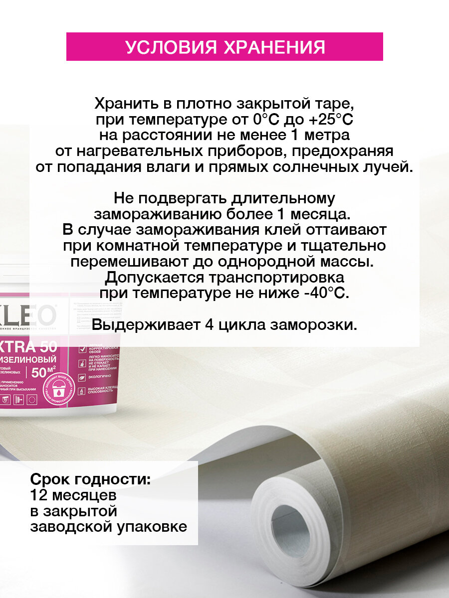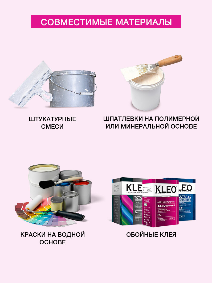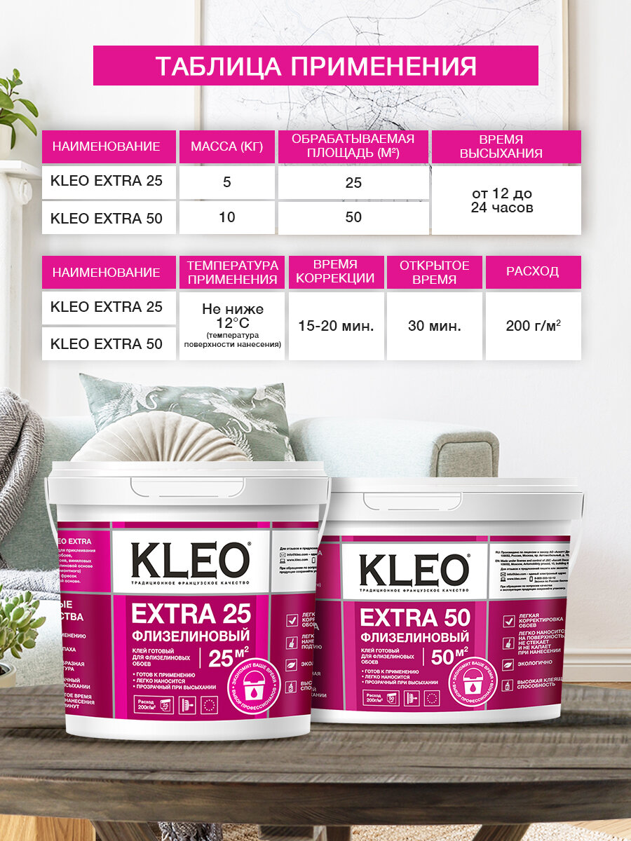 Клей готовый для флизелиновых обоев KLEO EXTRA на 50 кв.м для приклеивания всех видов флизелиновых обоев, виниловых обоев и фресок на флизелиновой основе, малярного (ремонтного) флизелина