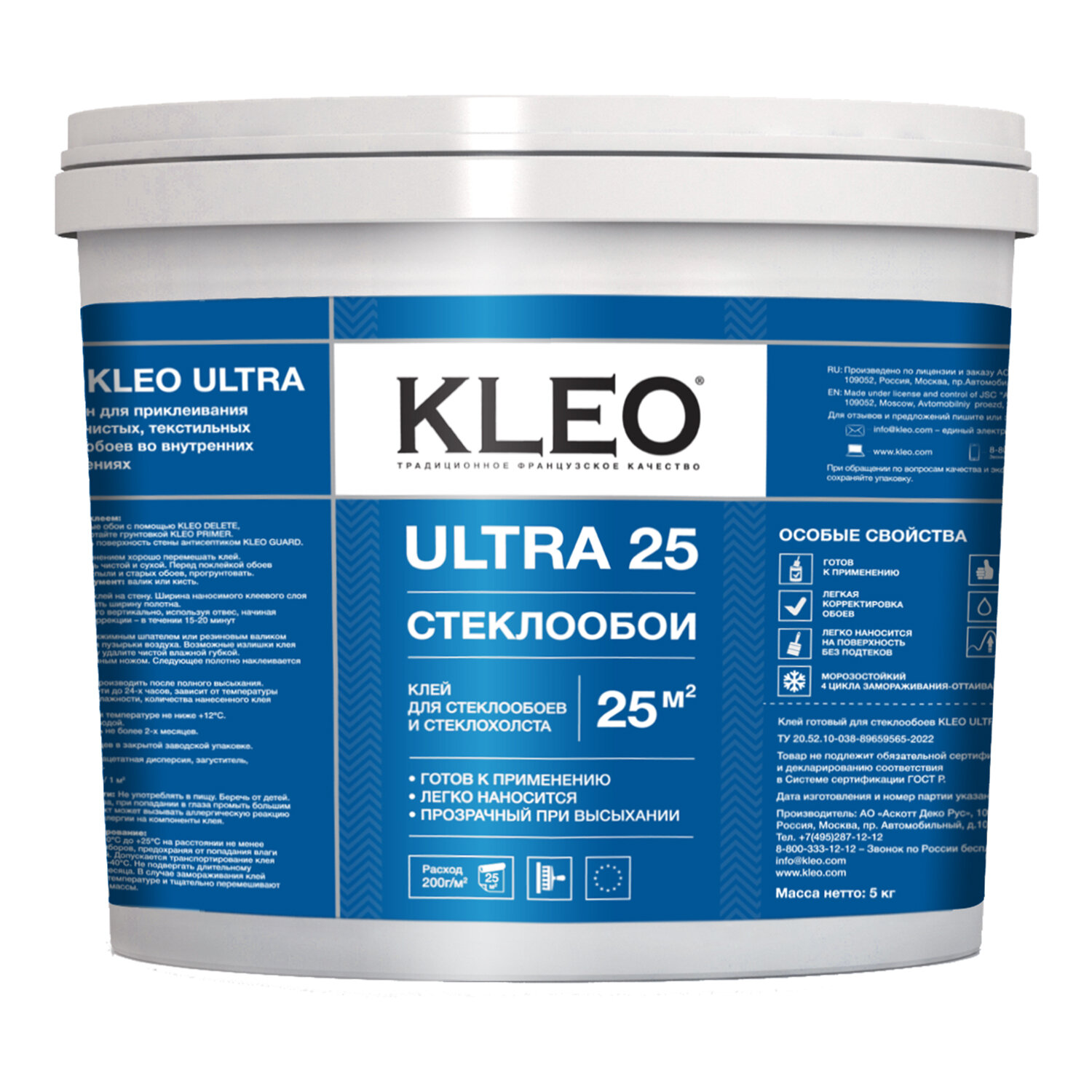 Клей для стеклообоев готовый KLEO ULTRA ведро 5кг, 25 кв.м.