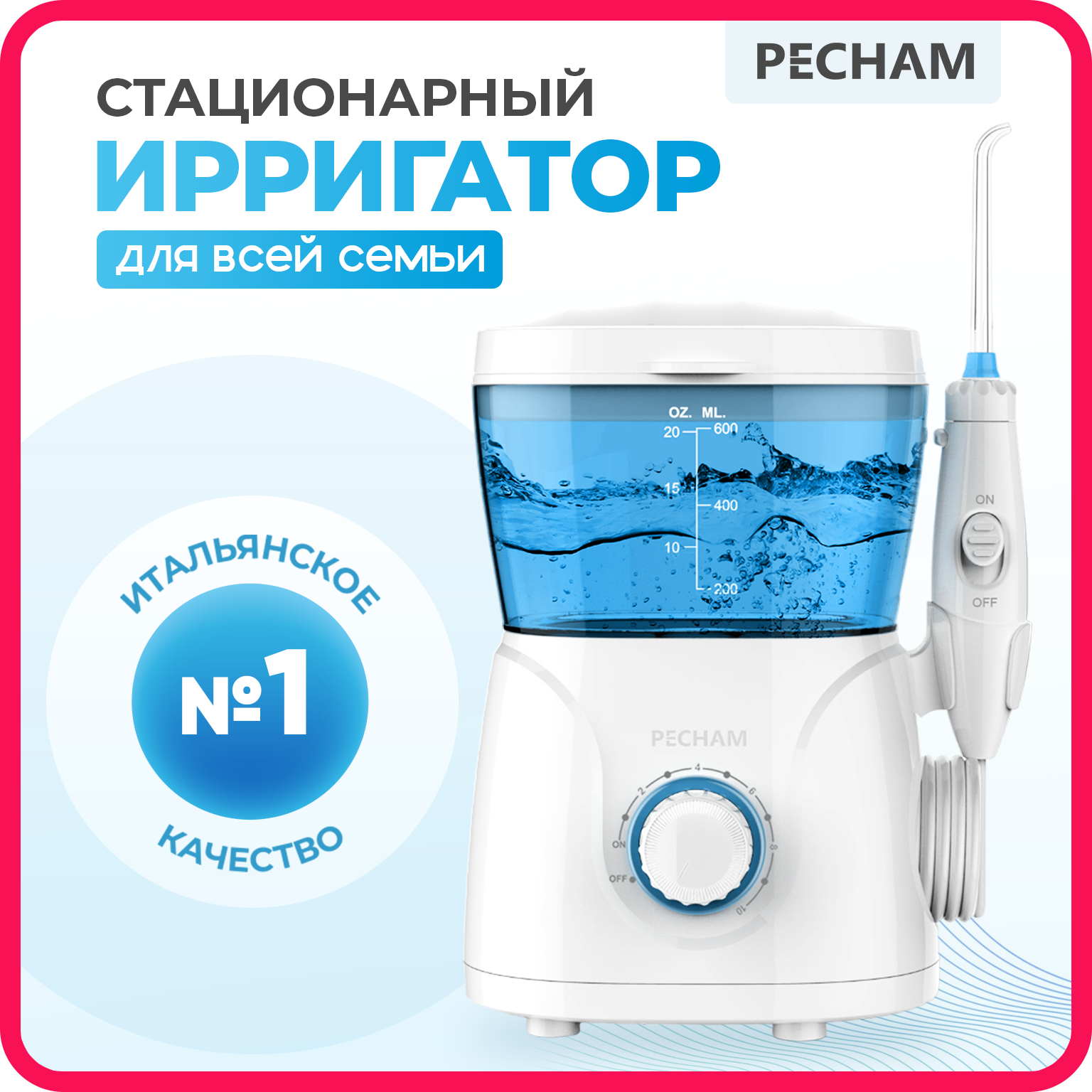 Ирригатор стационарный для полости рта PECHAM Professional White Edition, 600 мл, 8 насадок, семейный интересное: