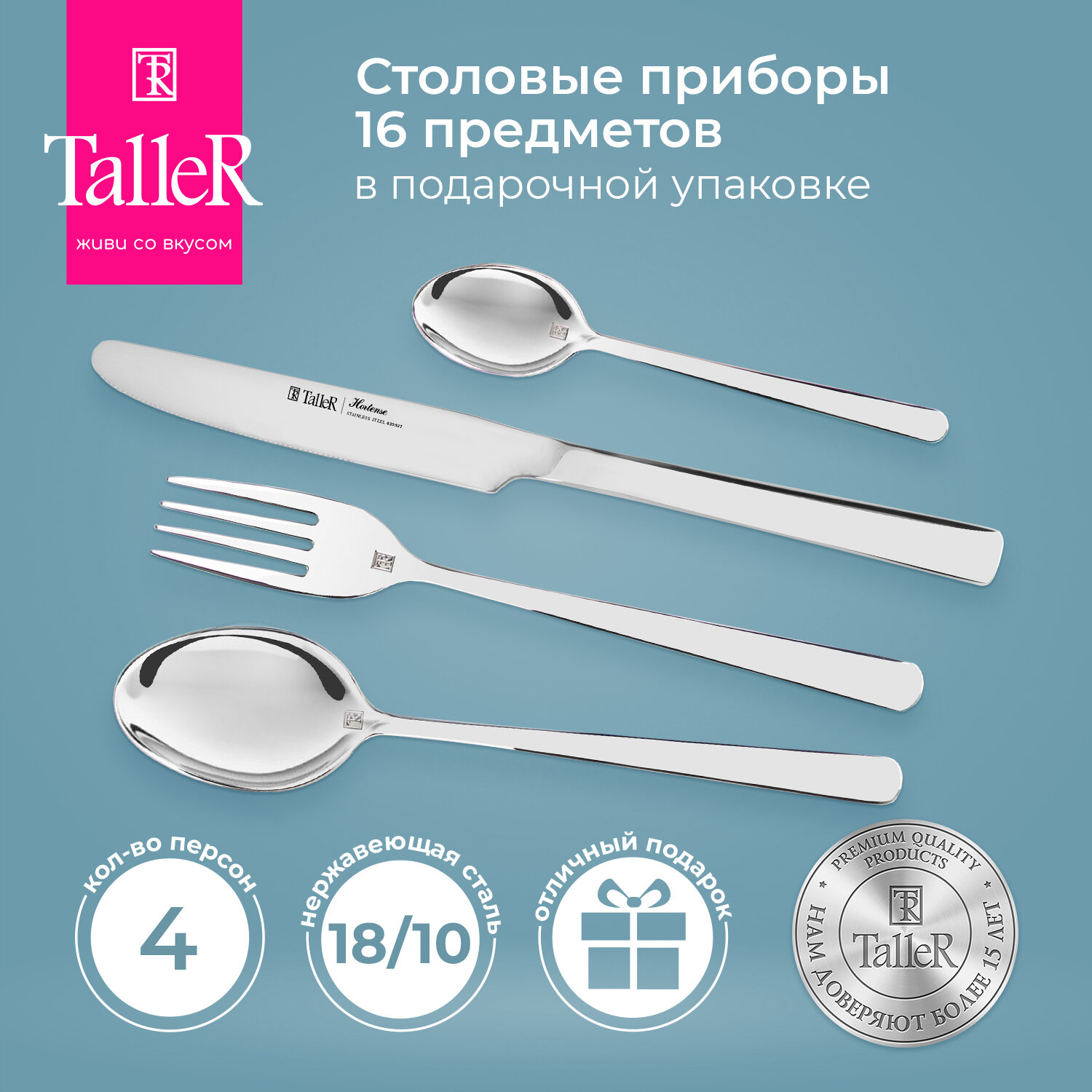 Набор столовых приборов TalleR TR-21622 Стейси, 16 предметов в подарочной упаковке, нержавеющая сталь