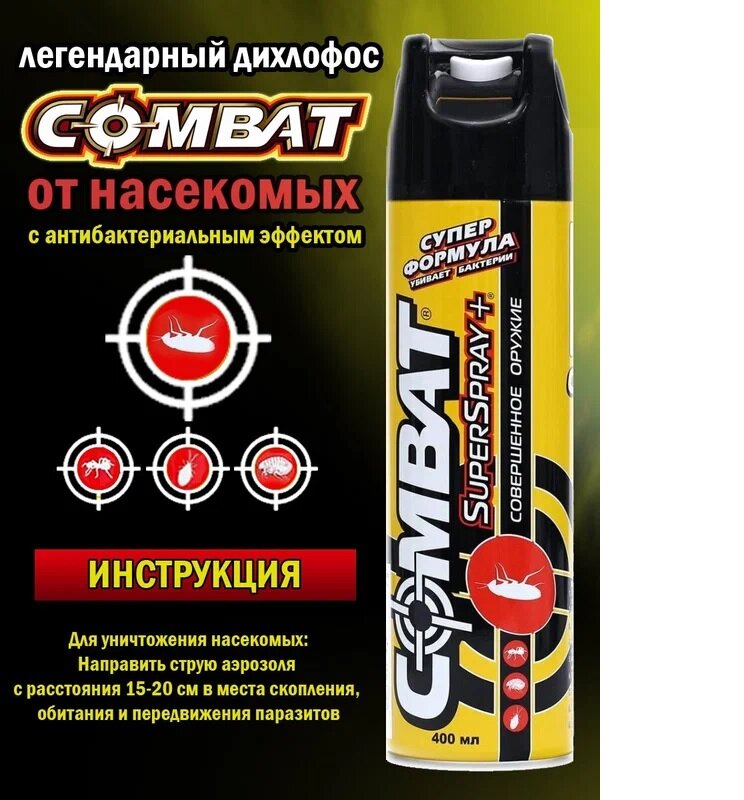 Средство от насекомых Combat SuperSpray+ от ползающих насекомых, 400 г, 400 мл интересное:
