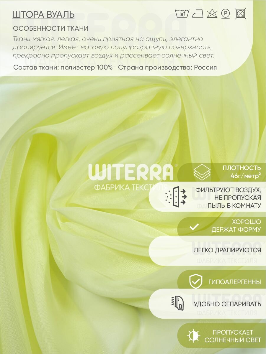 Штора вуаль Witerra, 200х260 см, светло-зеленый
