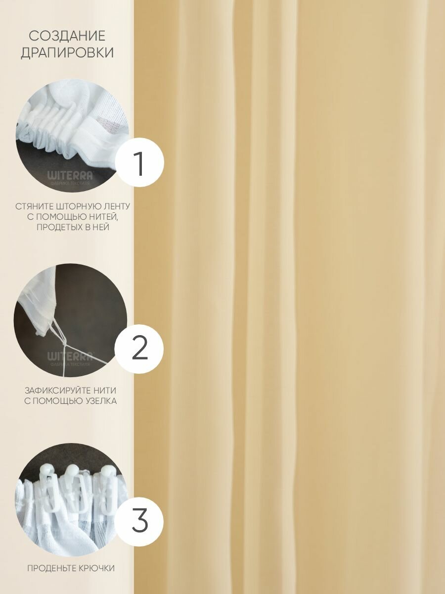 Штора-вуаль Witerra тюль на шторной ленте однотонная, 150х260 см, шампань, 1 шт.