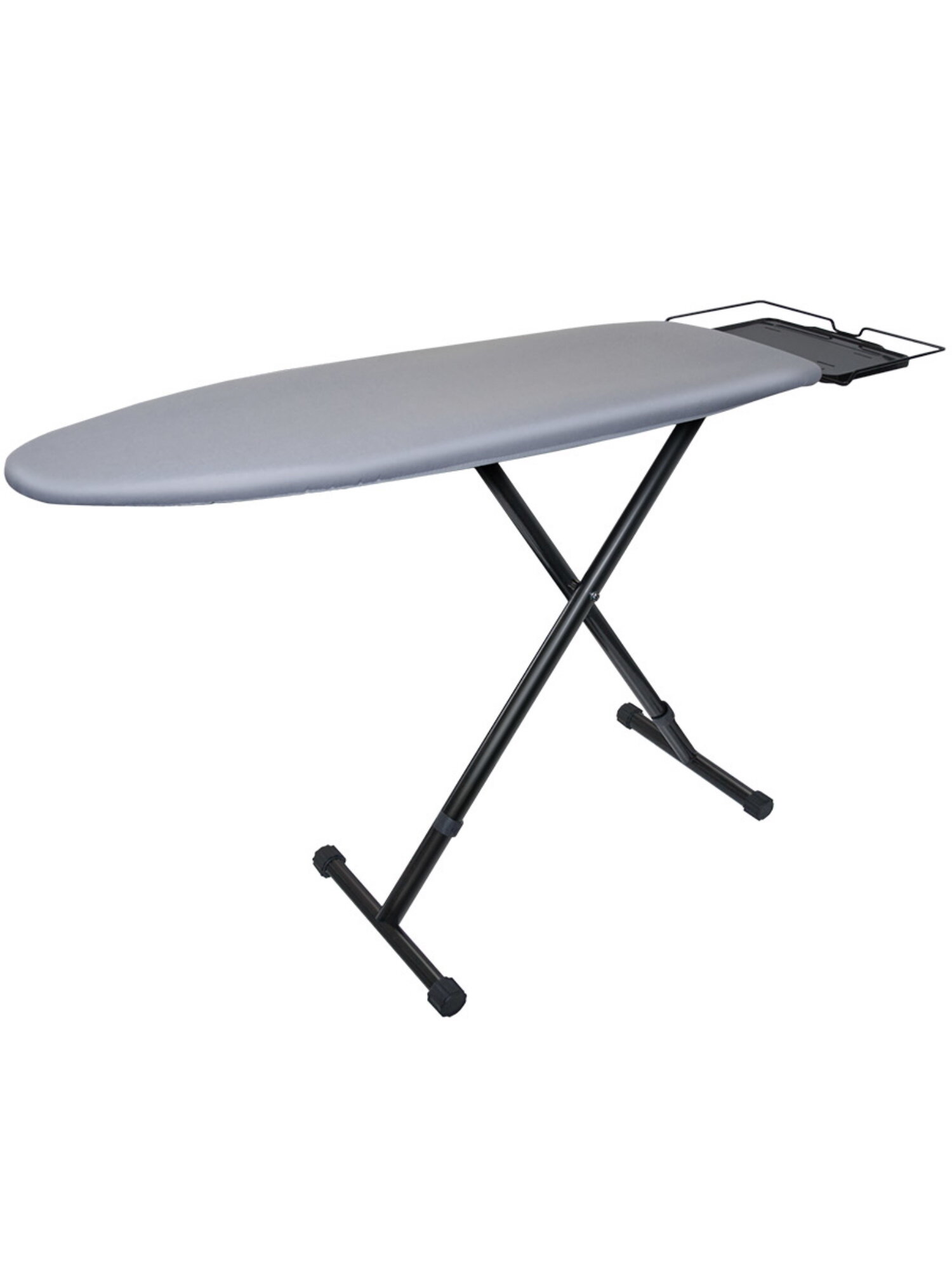 Крепкая, добротная доска с большим удобным полотном для глажения. Несмотря на габариты и немалый вес, очень легко складывается-раскладывается. Удобная полочка для парогенератора/утюга.