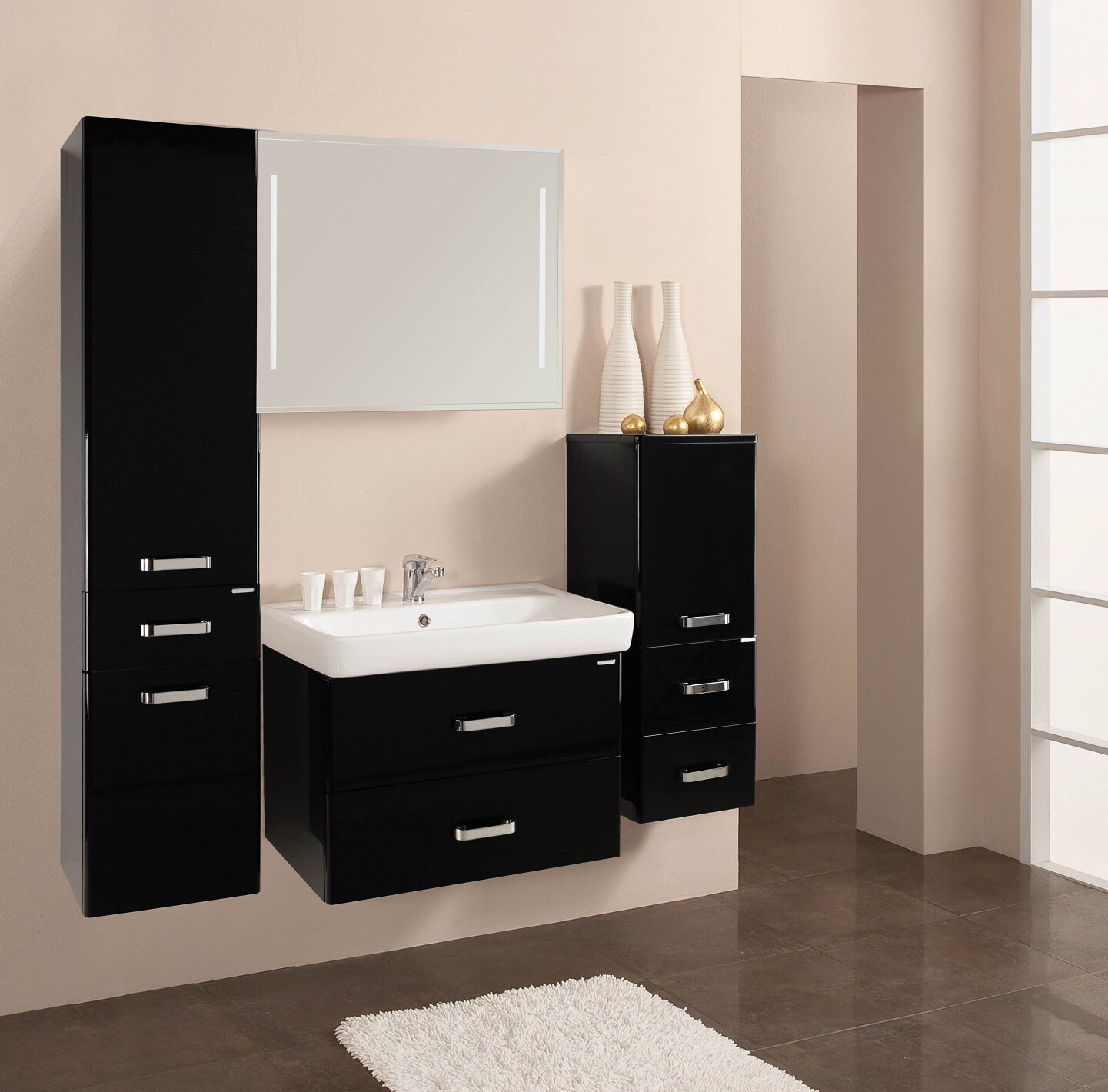 Тумба с раковиной в комплекте AQUATON Америна 80, подвесной, 760х460х439 мм, черный глянец