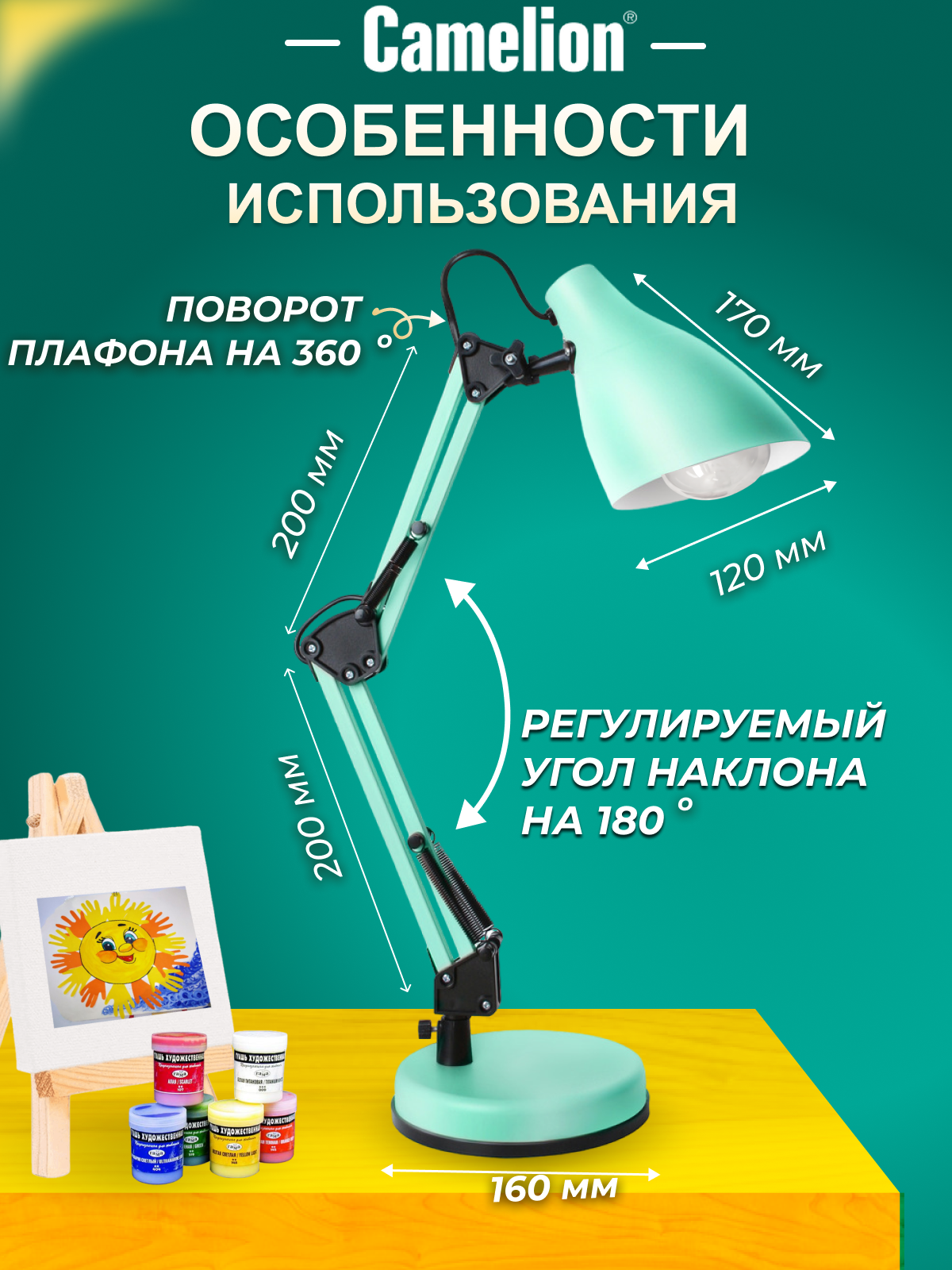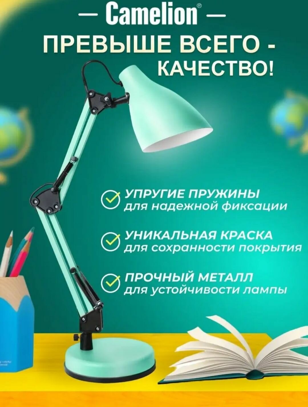 KD-331 C16 мятный (Светильник настольный, 230V, 40W, E27), CAMELION 14165 (1 шт.)