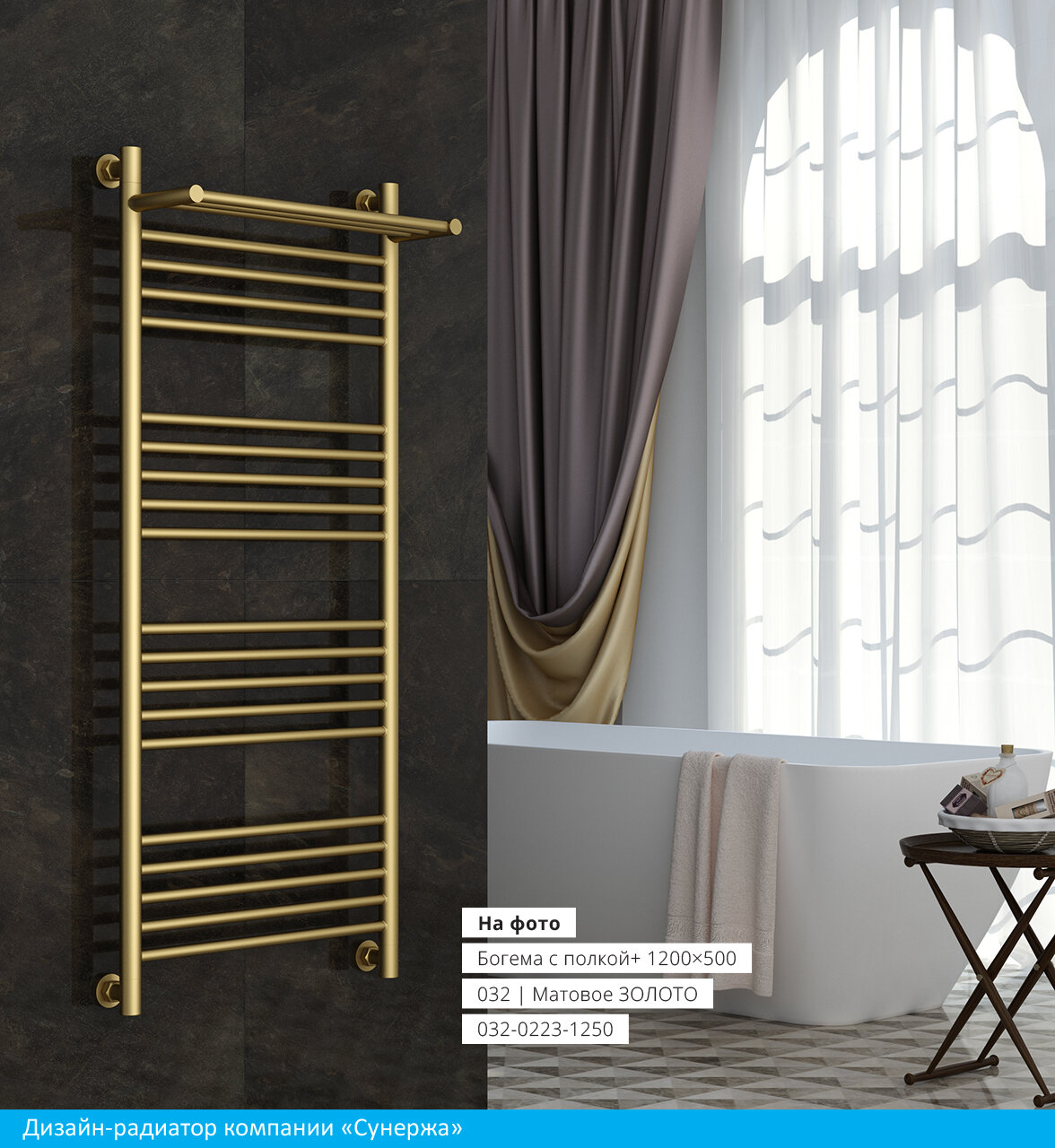 Полотенцесушитель водяной Сунержа Богема с полкой+ 1000х400 Сатин