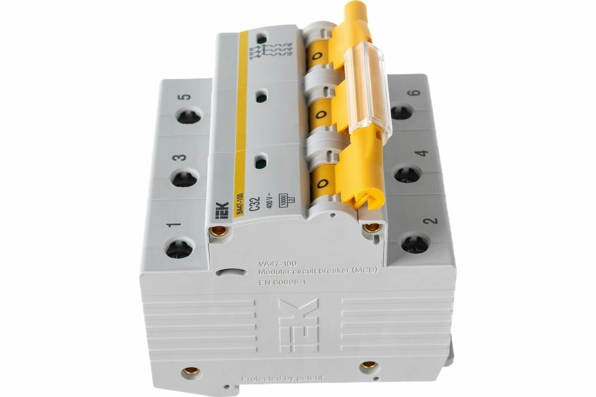2шт. - Выключатель автоматический трехполюсный 32А С ВА47-100 10кА / IEK; арт. MVA40-3-032-C; оригинал / - комплект 2шт