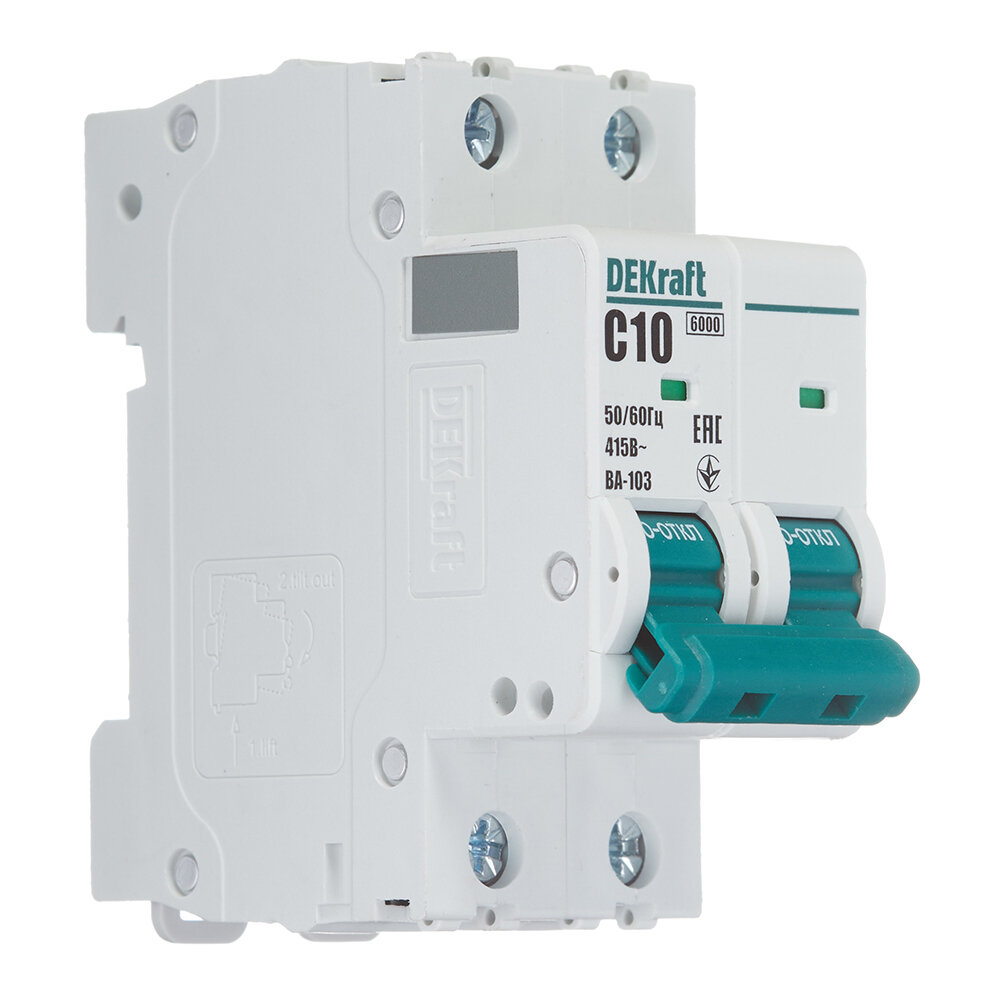 Автоматический выключатель Dekraft BA-103 (12287DEK) 2P 10А тип C 6 кА 230-400 В на DIN-рейку