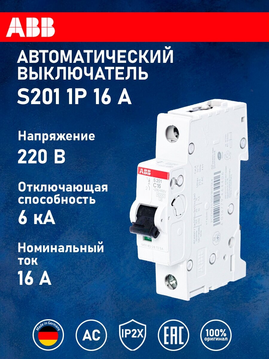Ниже Вы можете прочитать отзывы на Модульный автоматический выключатель S201 1 полюс, 16А, х-ка C. 2CDS251001R0164 ABB, ознакомится с подробными характеристиками, посмотреть интересные обзоры и фотографии на Модульный автоматический выключатель S201 1 полюс, 16А, х-ка C. 2CDS251001R0164 ABB.
