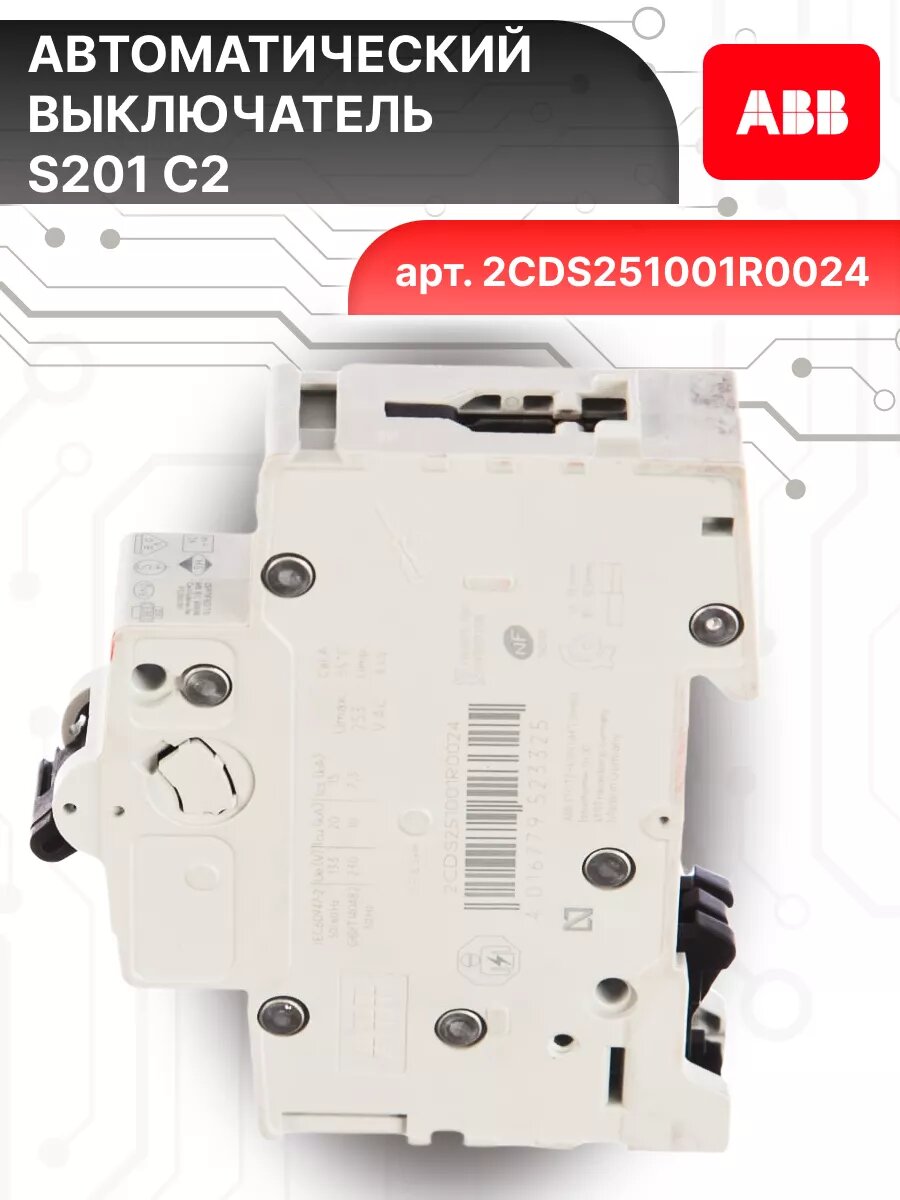 Автоматический выключатель 1P (1П) 2А тип C 6кА S201 ABB 2CDS251001R0024 10шт