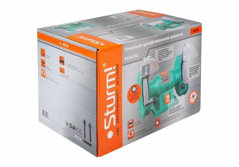 Станок Точильный станок ,150х16х12,7 мм, 280 Вт, 2950 об/мин, адаптирован для ДОП насад Sturm! BG60152U