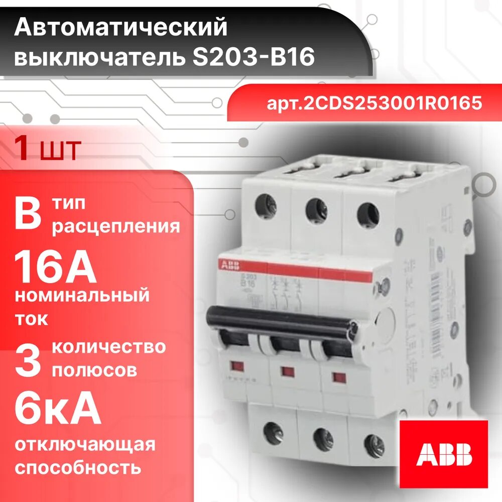 Ниже Вы можете прочитать отзывы на ABB S203 Автоматический выключатель 3P 16А 6kA 2CDS253001R0165, ознакомится с подробными характеристиками, посмотреть интересные обзоры и фотографии на ABB S203 Автоматический выключатель 3P 16А 6kA 2CDS253001R0165.
