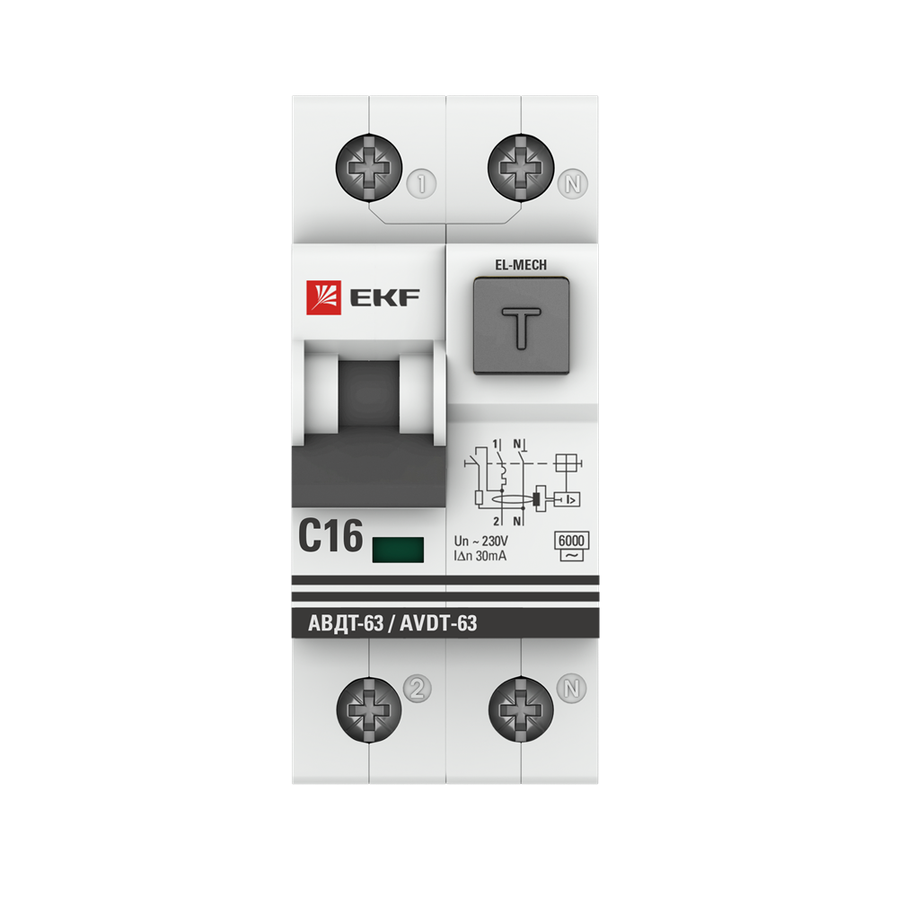 Авт. выкл. диф. тока EKF АВДТ-63 С16А 30mA -ка C эл. тип A 6кА (2м)
