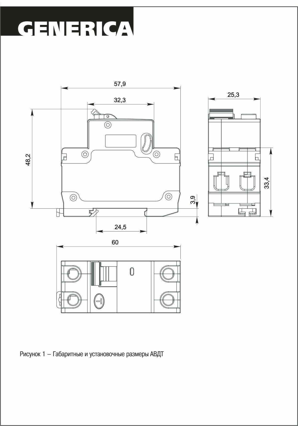 Дифференциальный автоматический выключатель Generica АВДТ 32, 2Р(1Р+N), C25, 30 мА, 4,5 кА