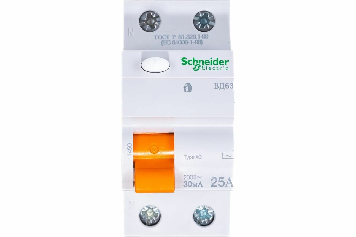 Выключатель дифференциального тока (УЗО) 2п 25А 30мА тип AC ВД63 Домовой SchE, SCHNEIDER ELECTRIC 11450 (6 шт.)