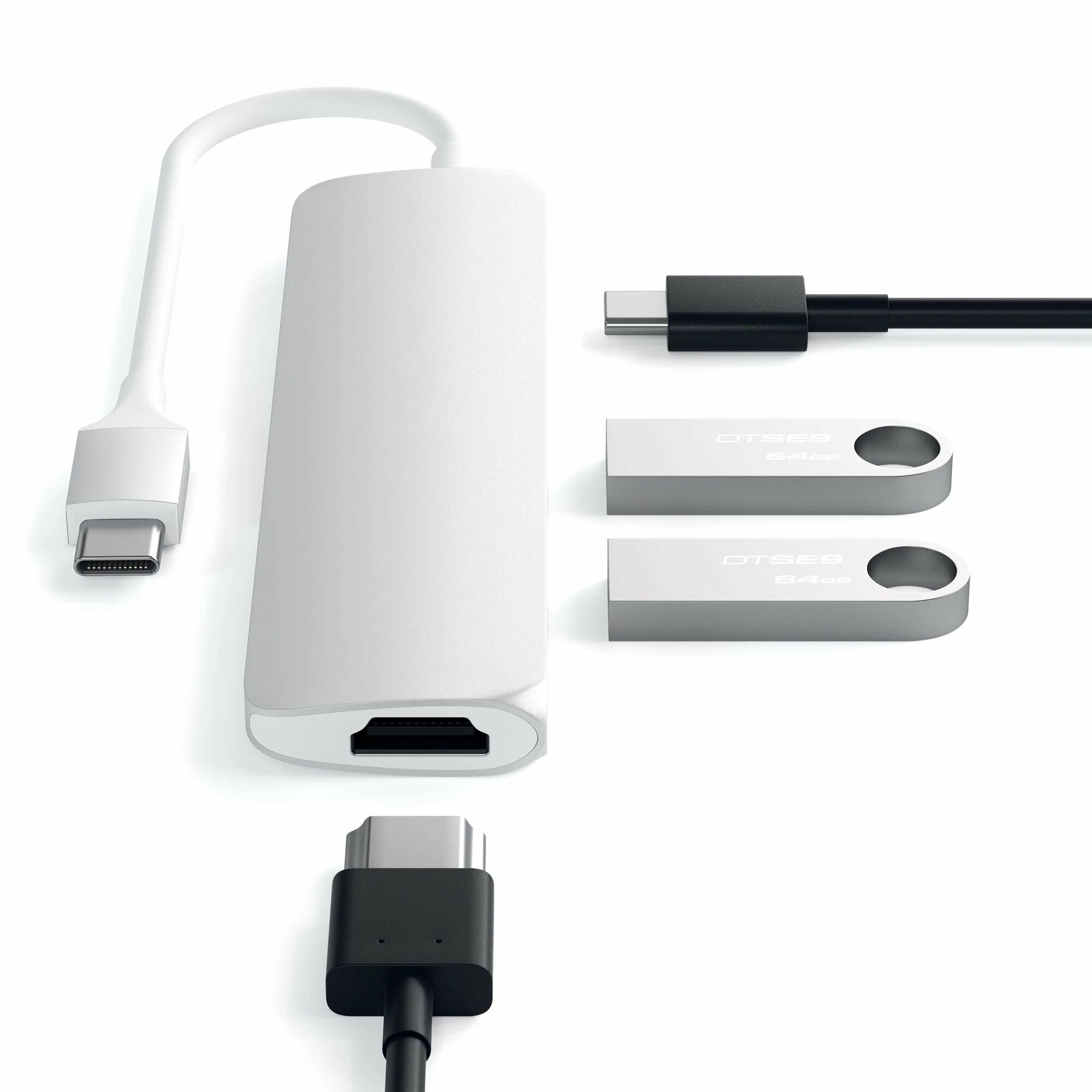 Док-станция Satechi Aluminum Type-C Slim Multi-Port Adapter 4K (2xUSB 3.0, USB Type-C, HDMI), Серебристый ST-CMAS